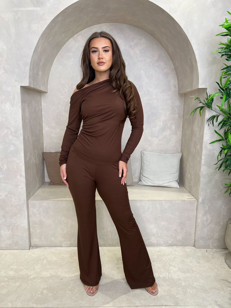 Long Sleeve Top With Seam Arm Detail And Piped Wide Leg Trouser Co Ord