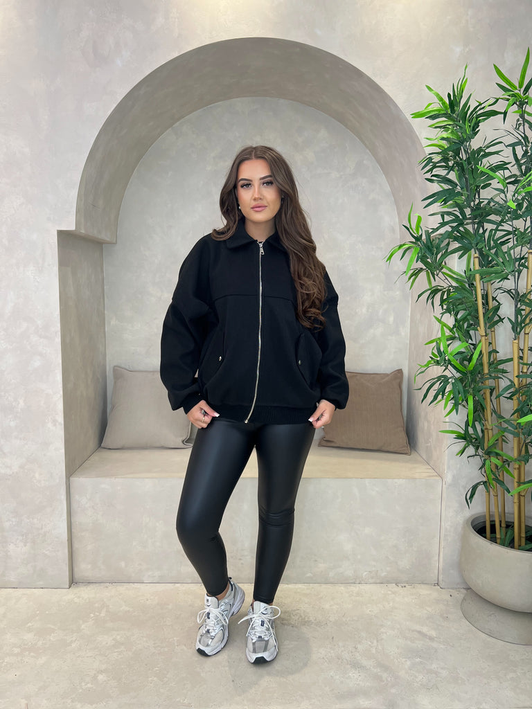 Diese kragenlose Bomberjacke verfügt über elastische Bündchen sowie zwei praktische Taschen. Der Reißverschluss ermöglicht ein einfaches und sicheres Schließen. Mit dieser modernen Jacke bleiben Sie stilvoll und funktional.