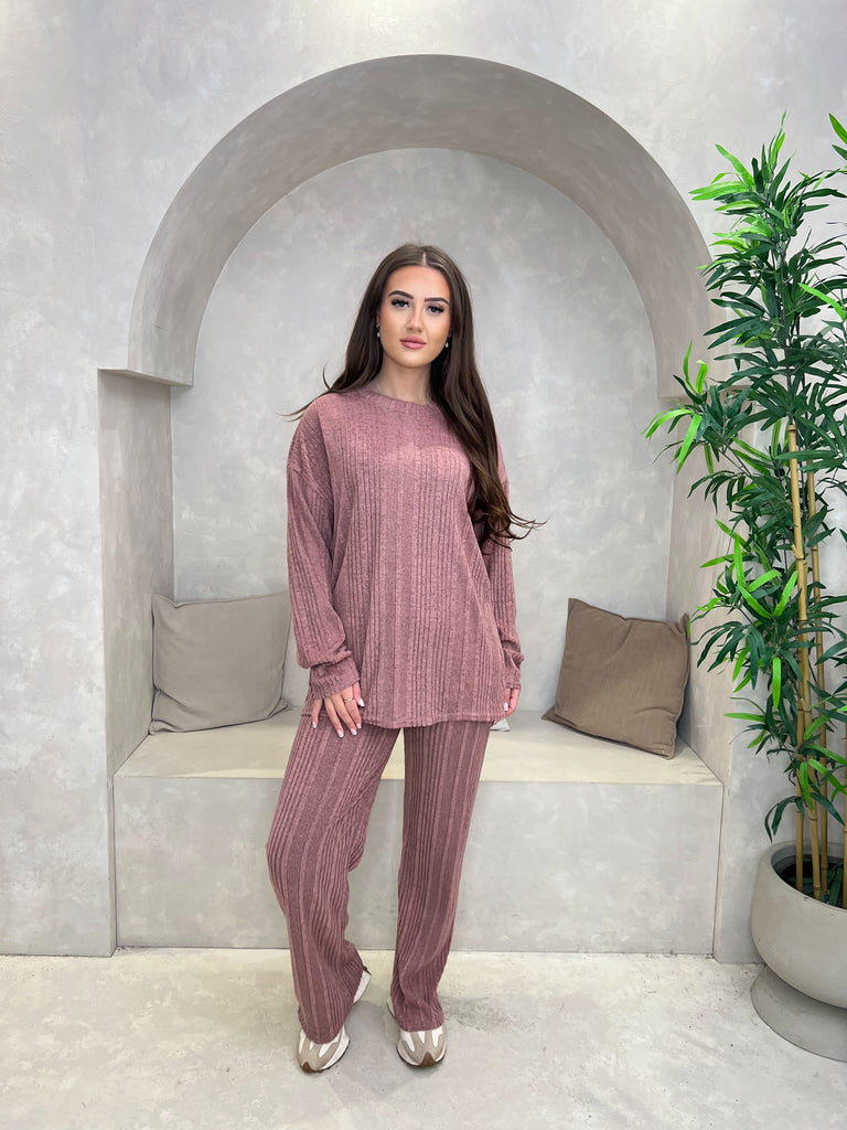 Geripptes Lounge-Set mit Rundhalsausschnitt