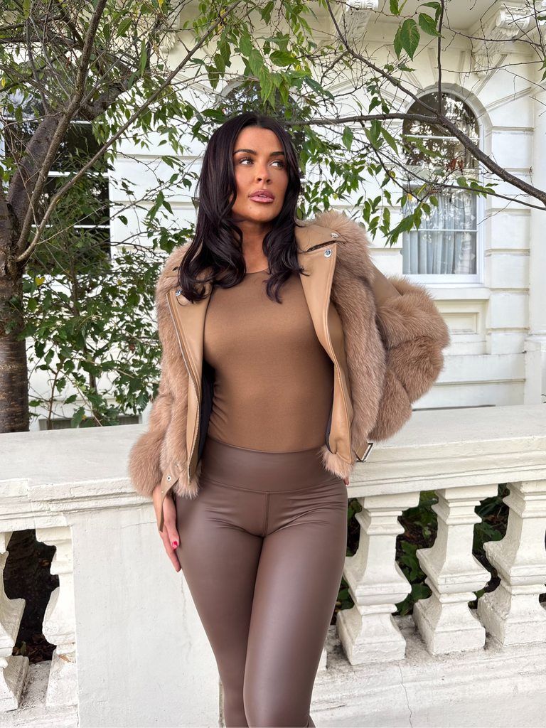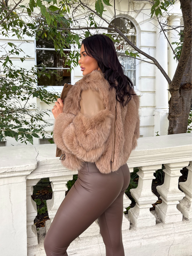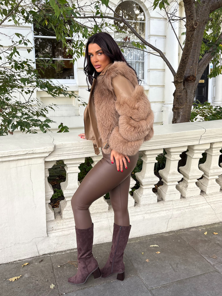 Kamelfarbene Luxus-Pelzjacke im Biker-Stil