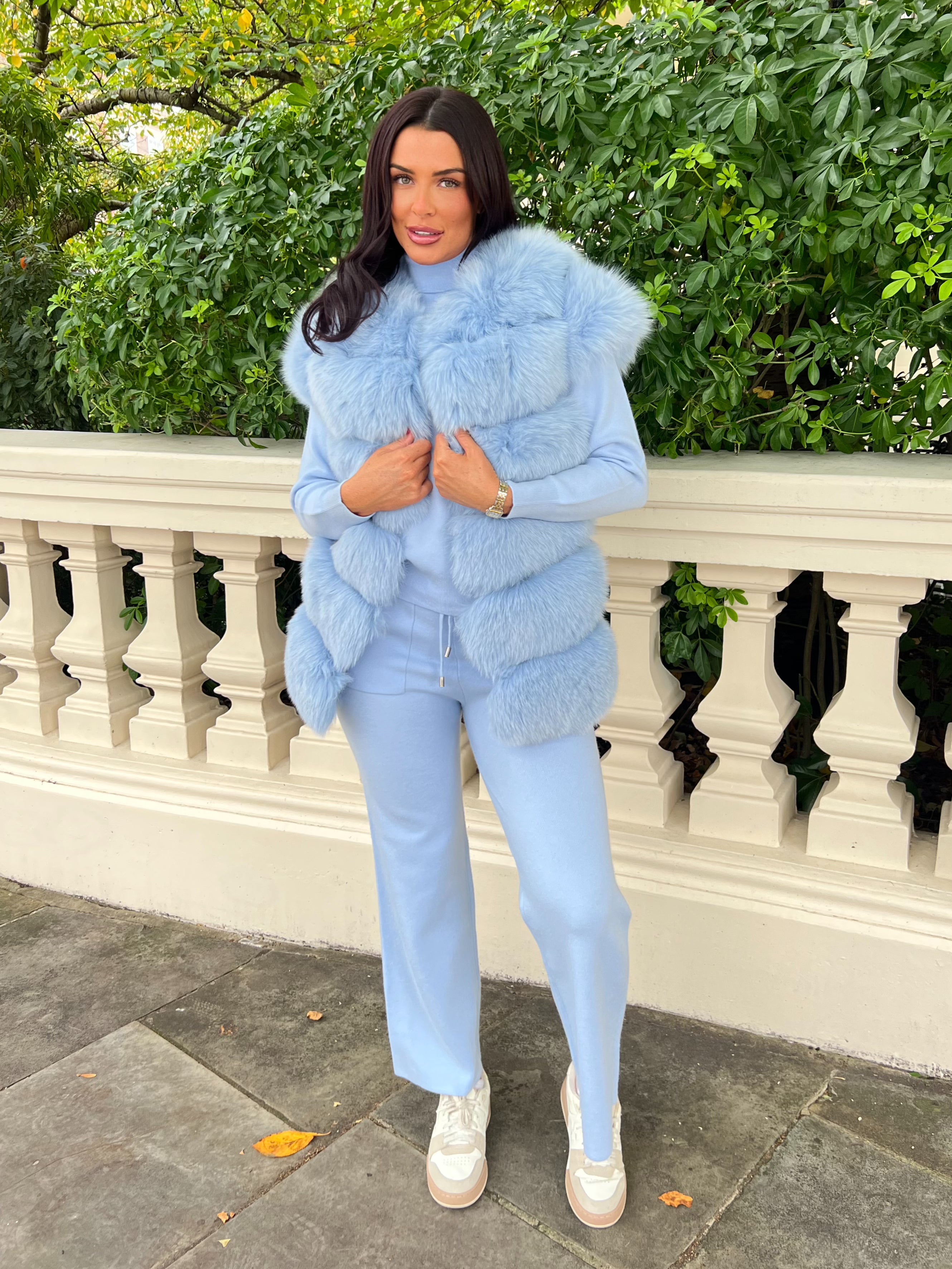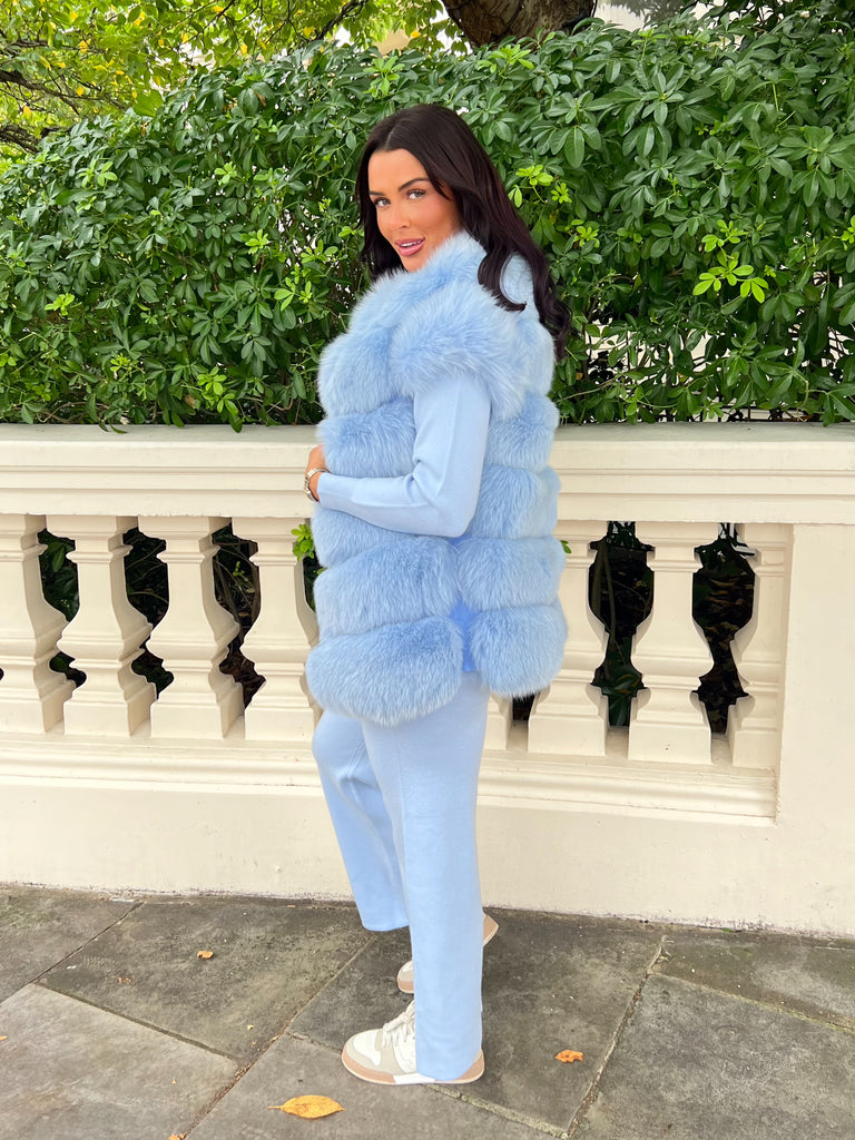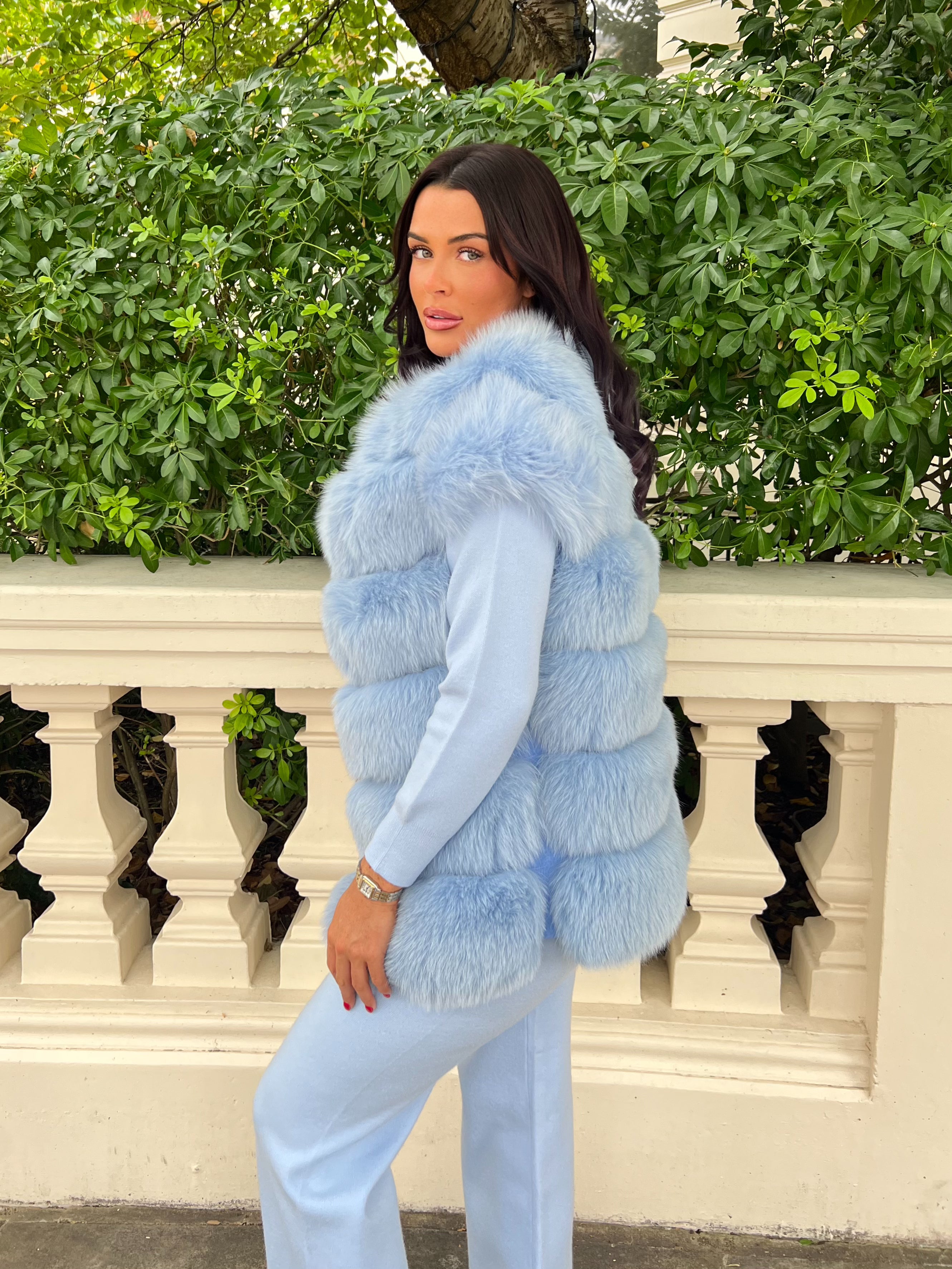 Babyblaue 6-reihige Luxuspelzweste