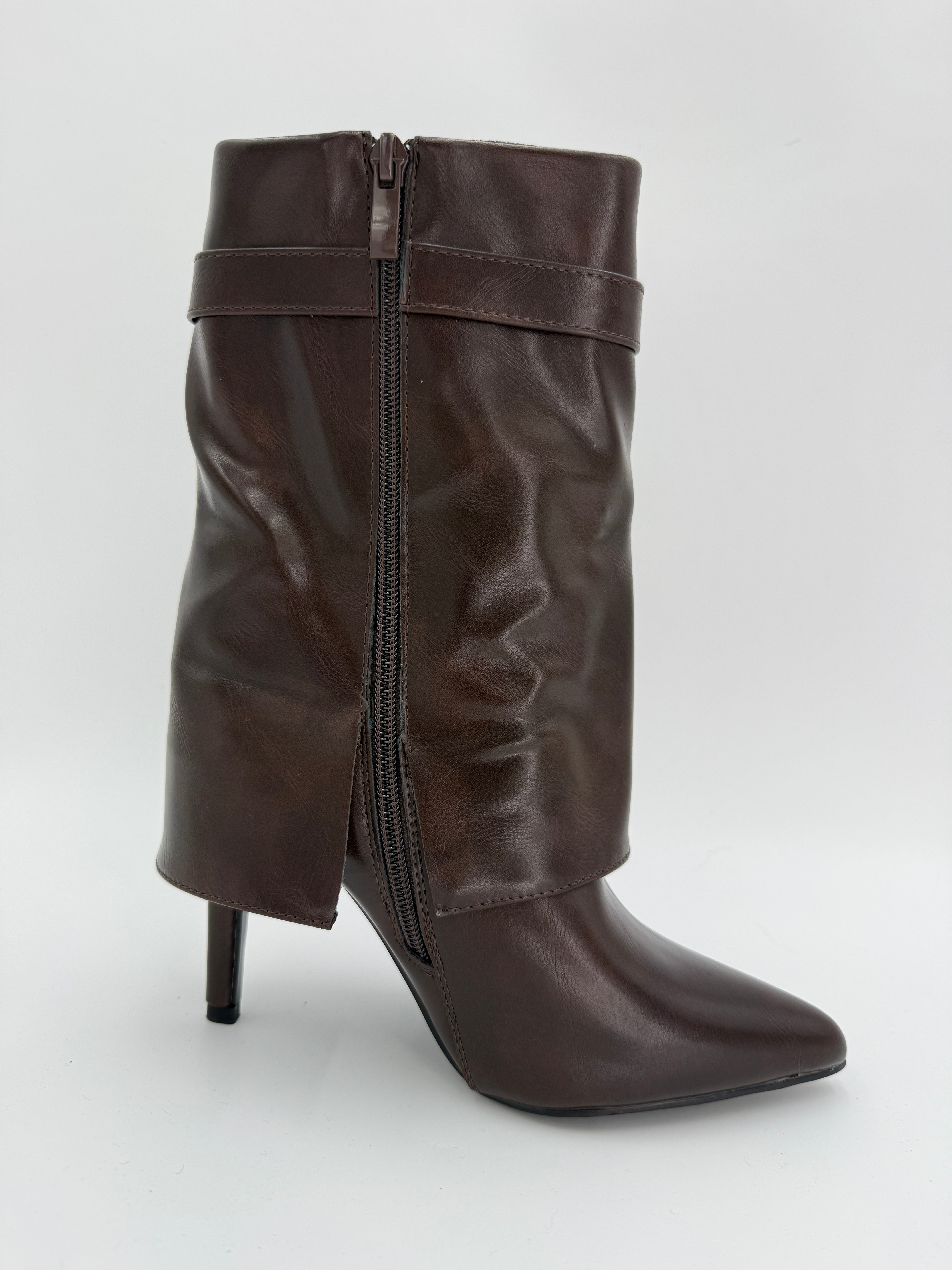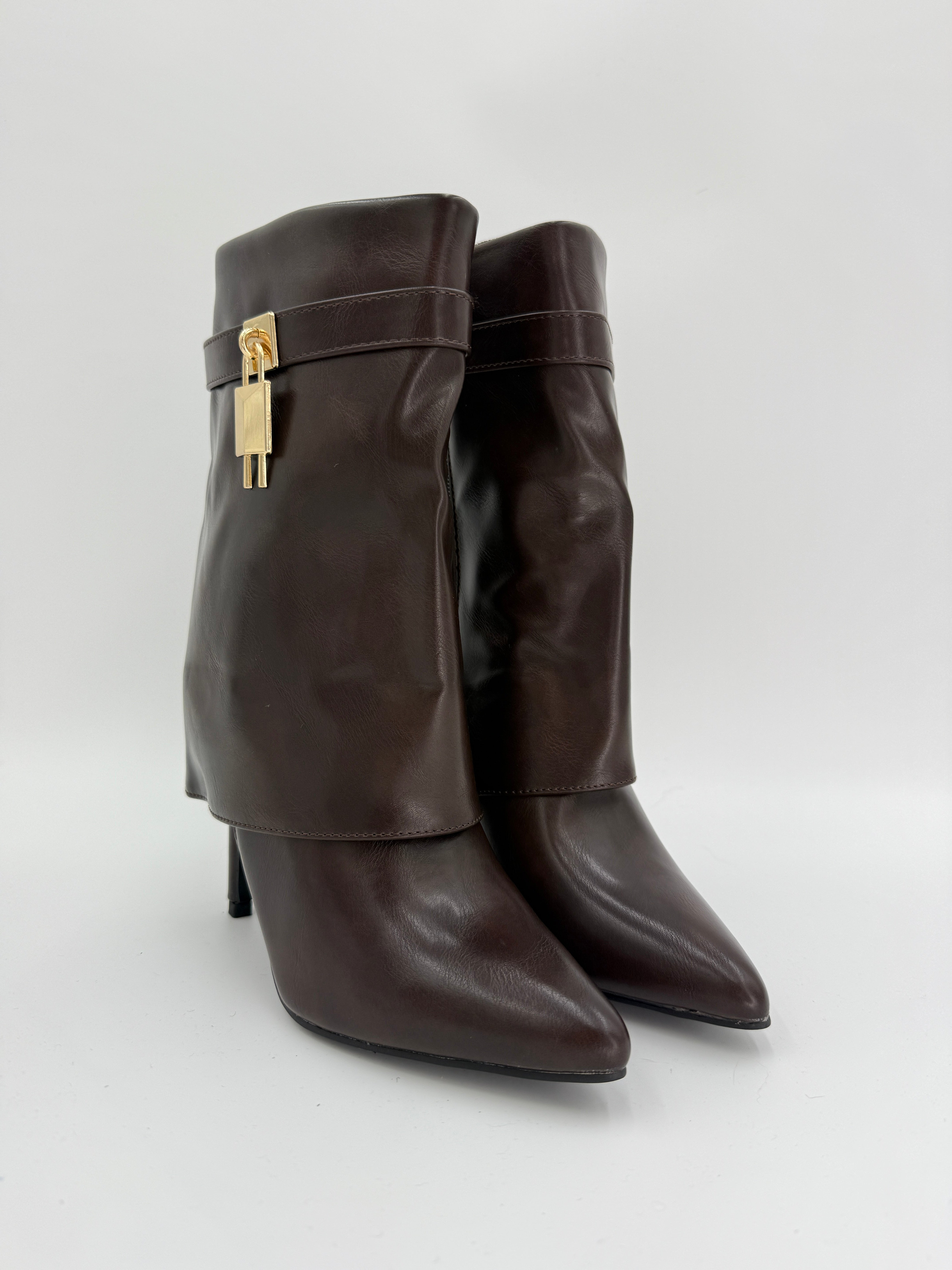 Chocolate Brown Fold Over Faux Leather Lock Boots