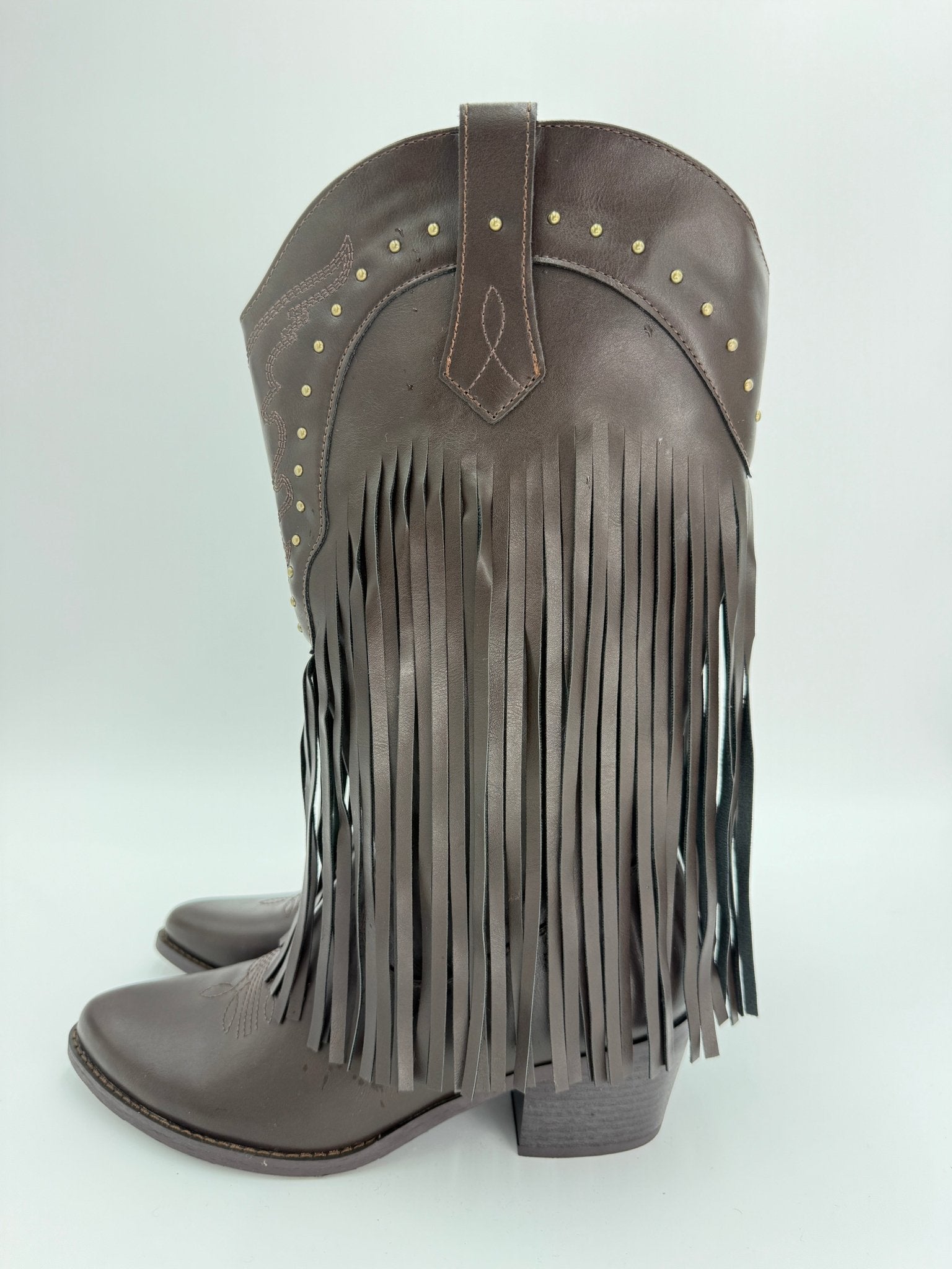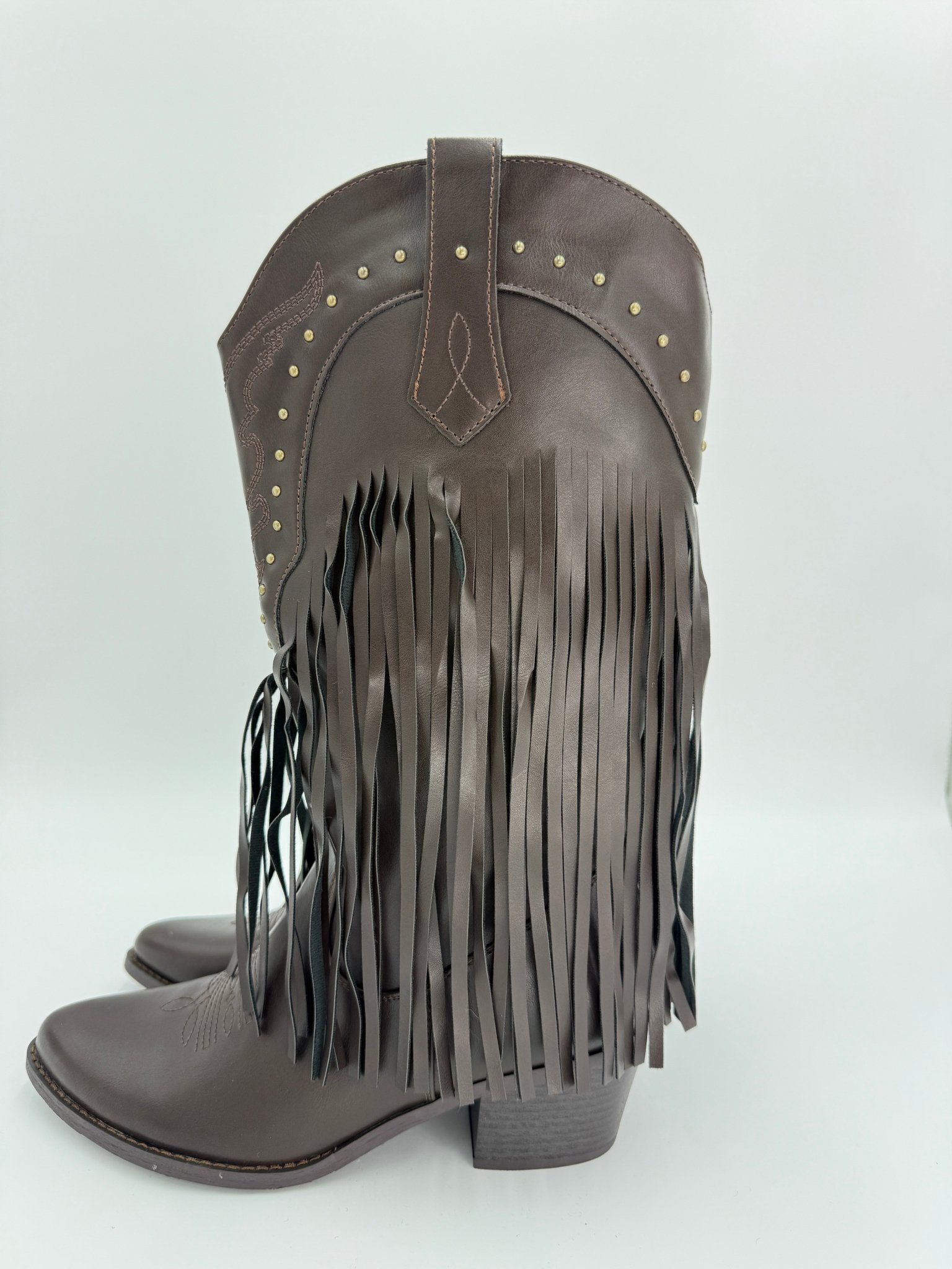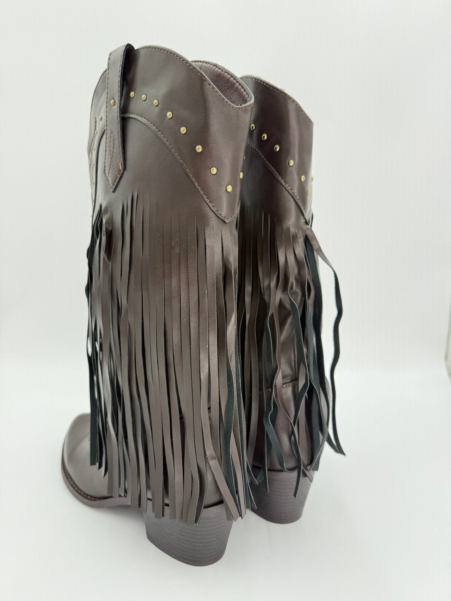 Chocolate Brown Fringe Faux leather Cowboy Boots