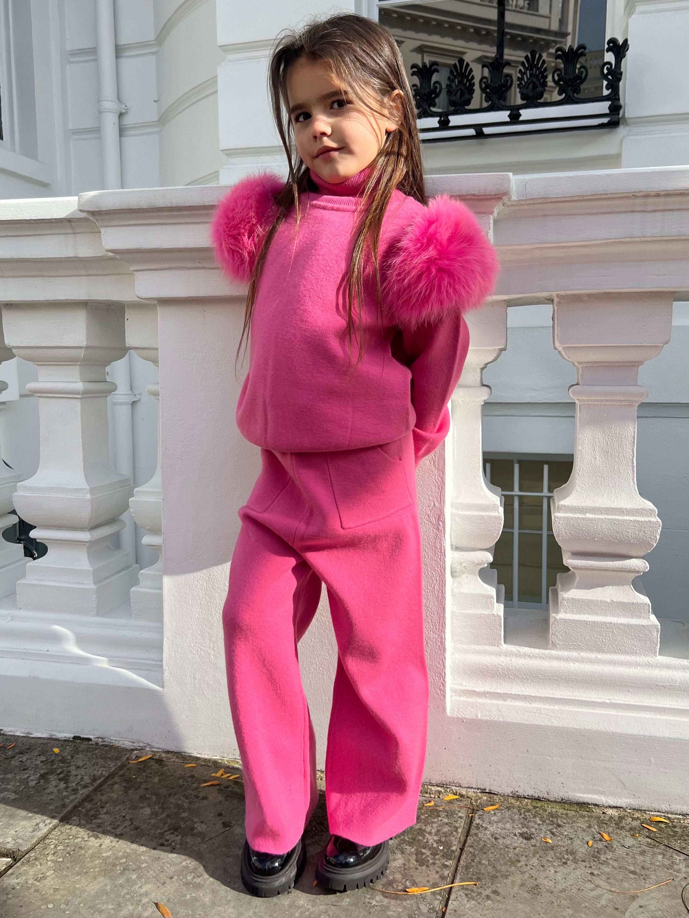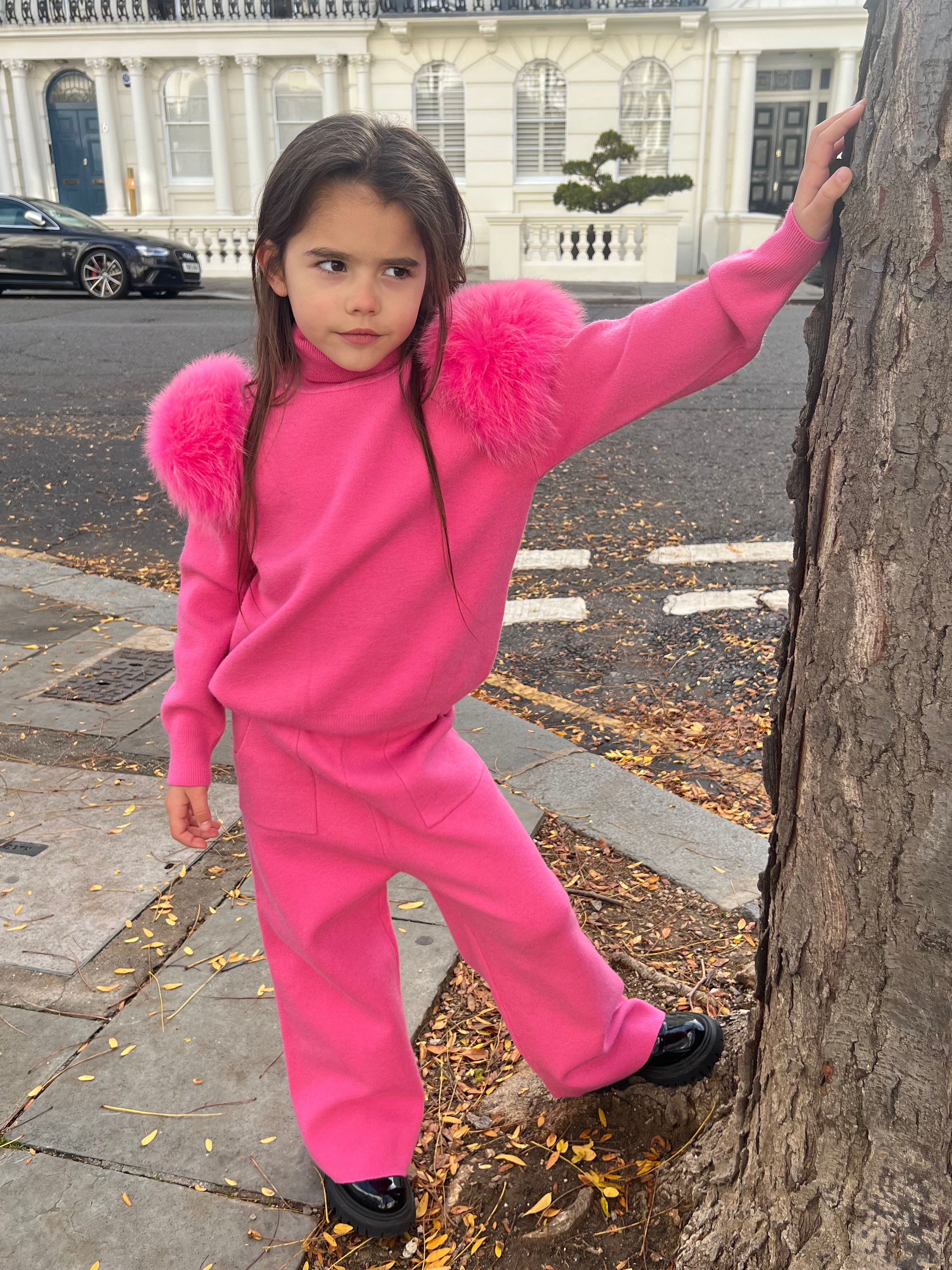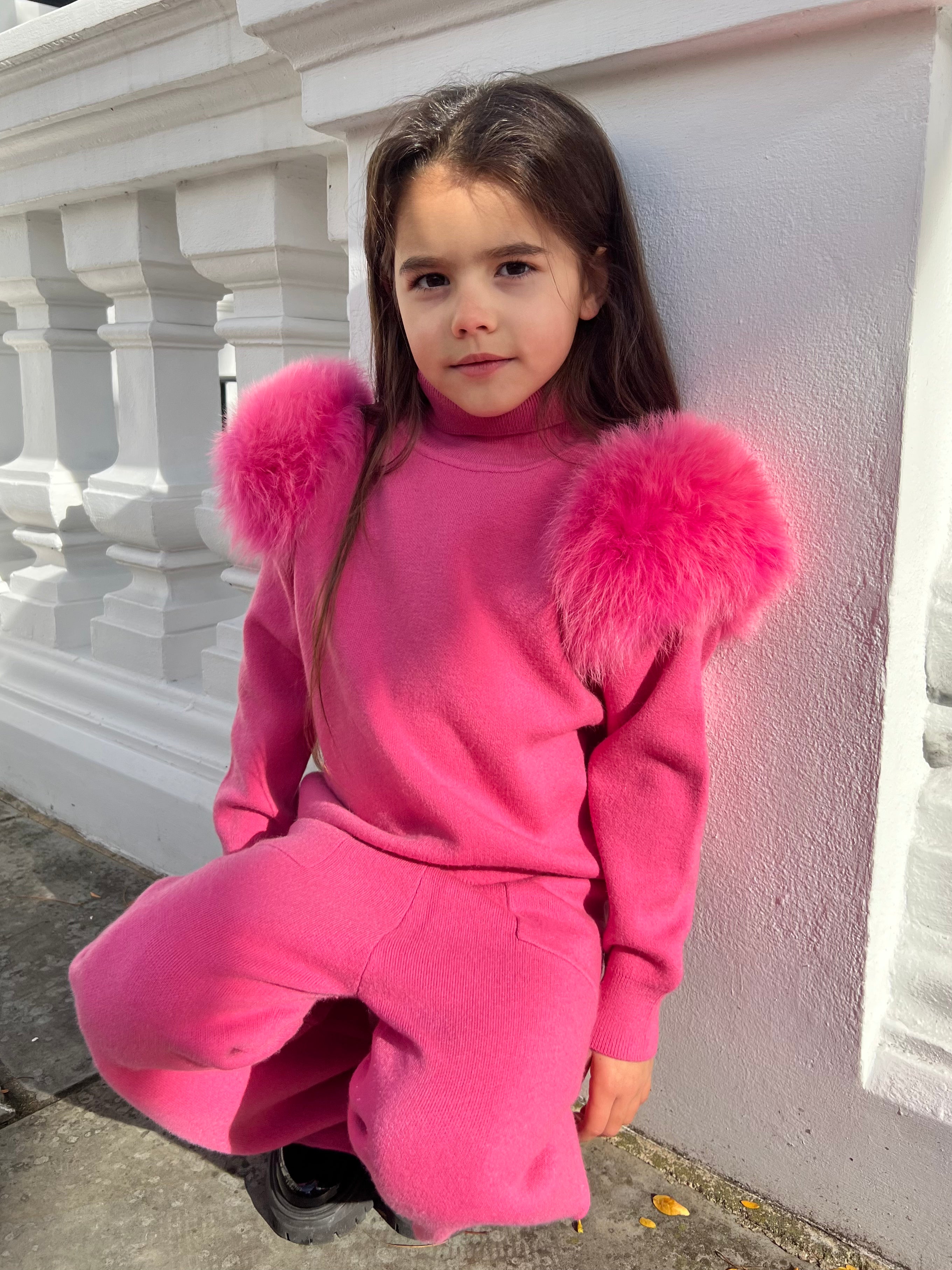 Babyblauer Luxus-Pelz-Trainingsanzug für Kinder