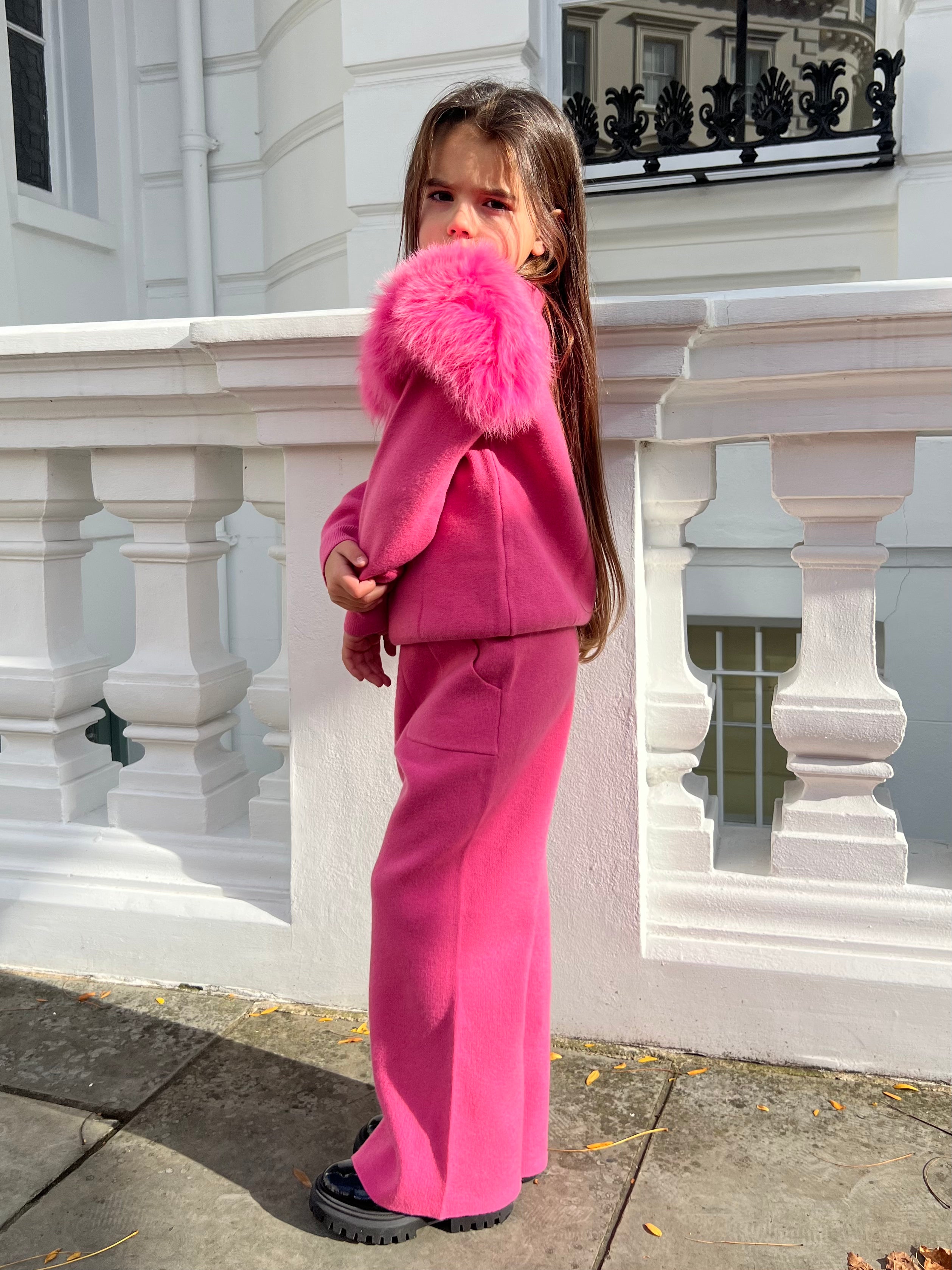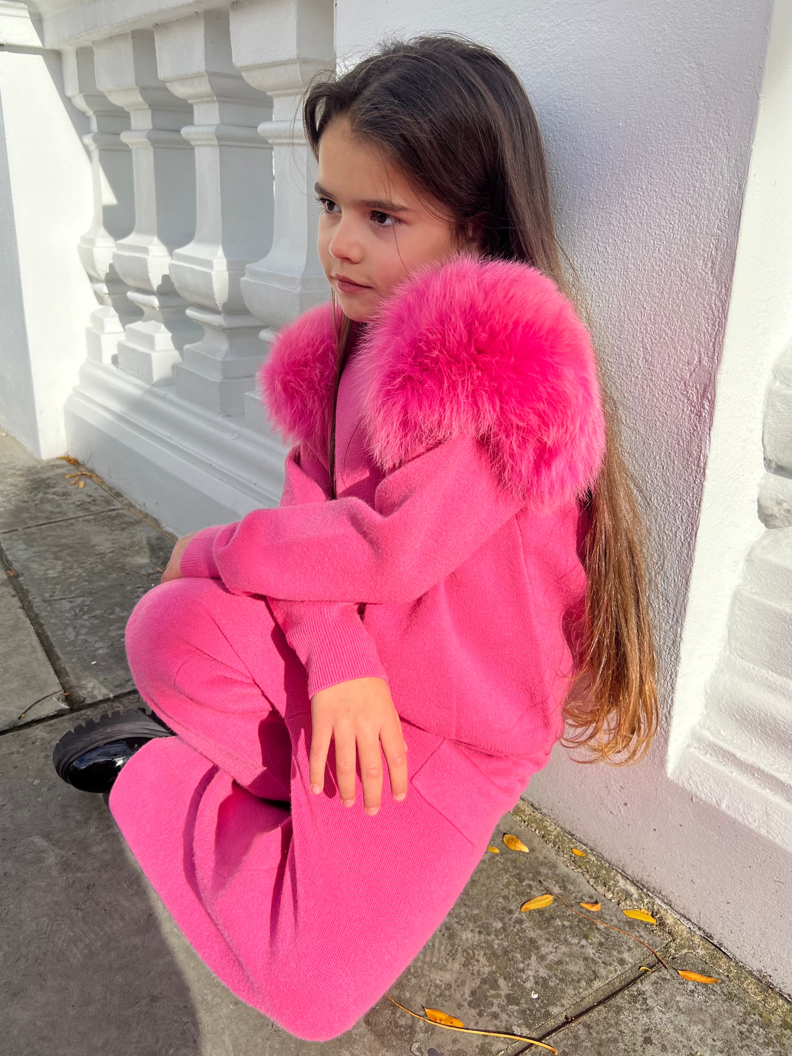 Verwöhnen Sie Ihre Kleinen mit Wärme und Stil mit unserem babyblauen Luxus-Pelz-Trainingsanzug für Kinder. Das Kapuzendesign sorgt für zusätzlichen Komfort und der trendige Look macht sie zum coolsten Kind auf der ganzen Welt. Dieser Trainingsanzug besteht aus dem weichsten Luxuspelz und hält sie den ganzen Tag über warm und stilvoll.