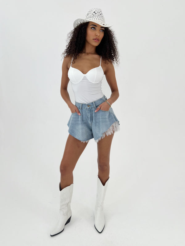 Our Gorgeous Lexi Denim Shorts With Lace Underlay