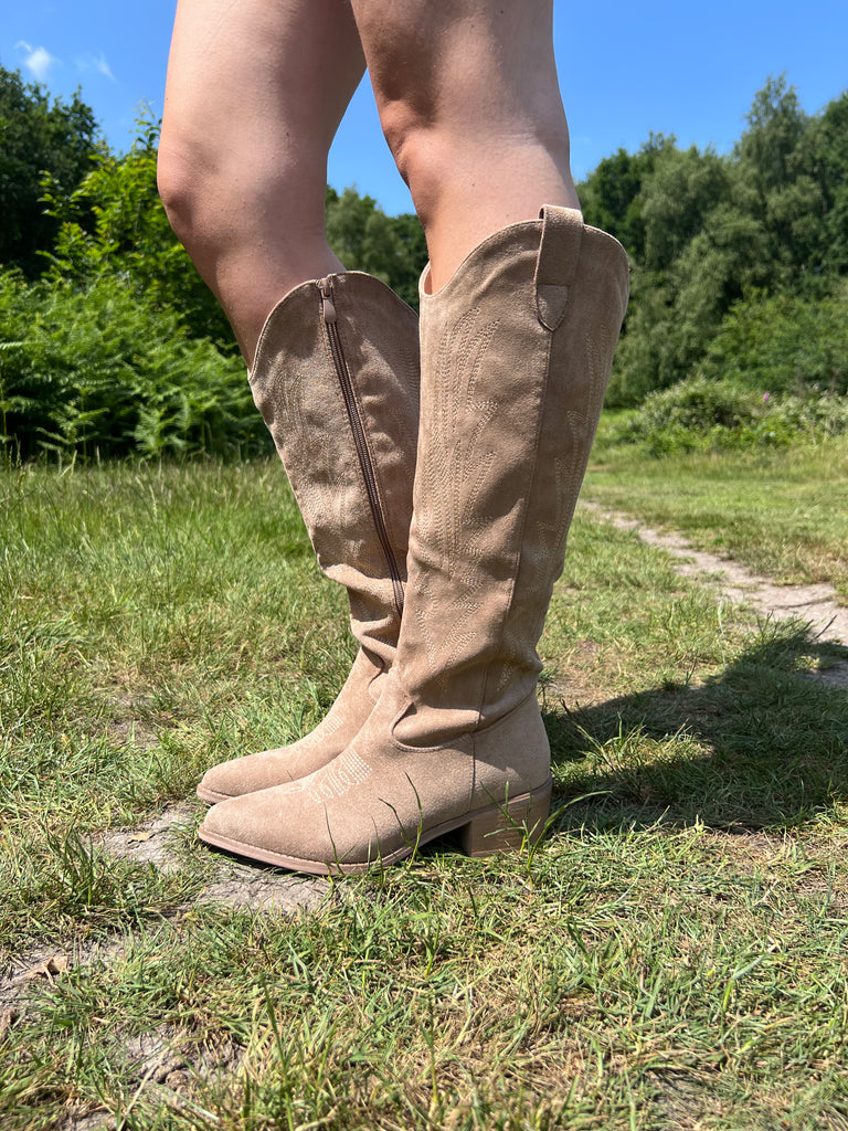 Dark Beige Faux Suede Shorter Cowboy Boots