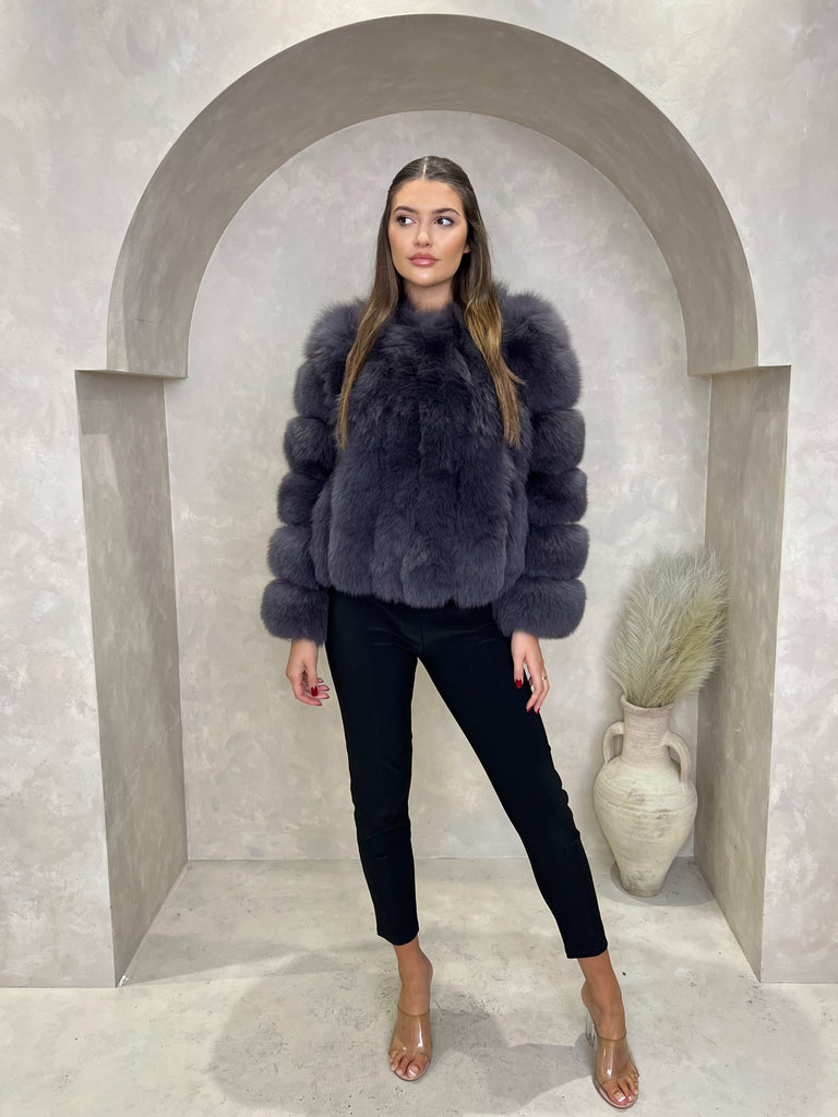 Gilet gris foncé en fourrure de luxe à 4 rangées