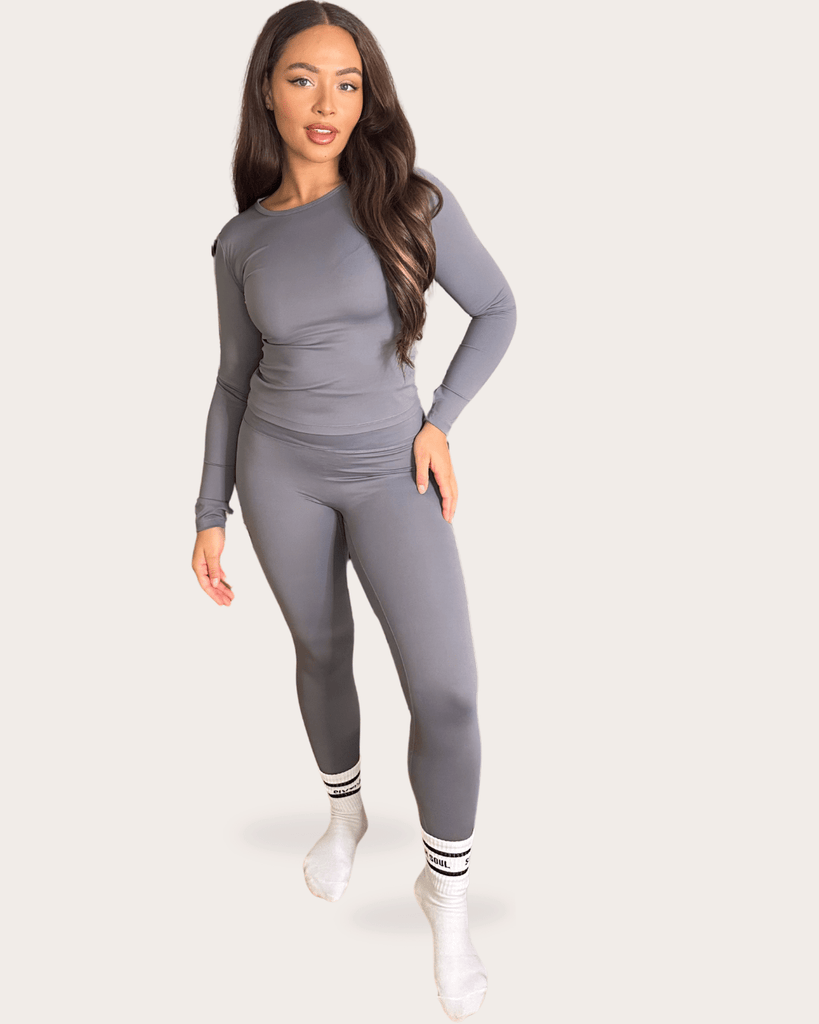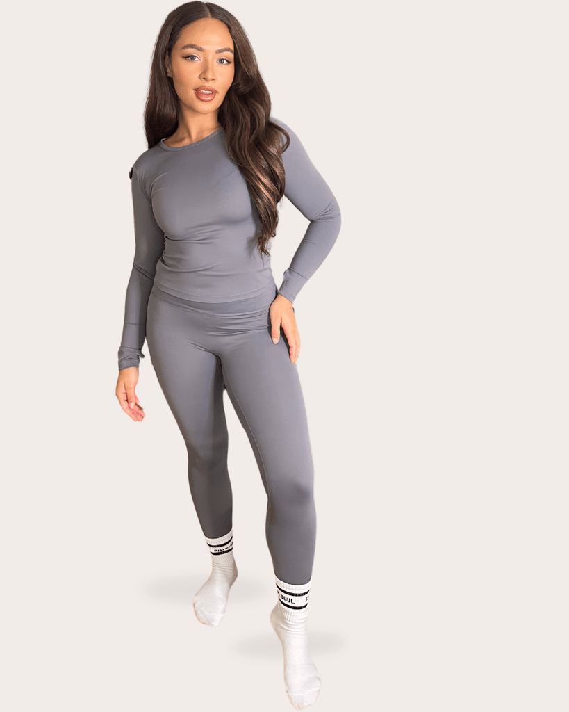 Ensemble de gym bleu côtelé sans couture à manches courtes et ourlet plongeant