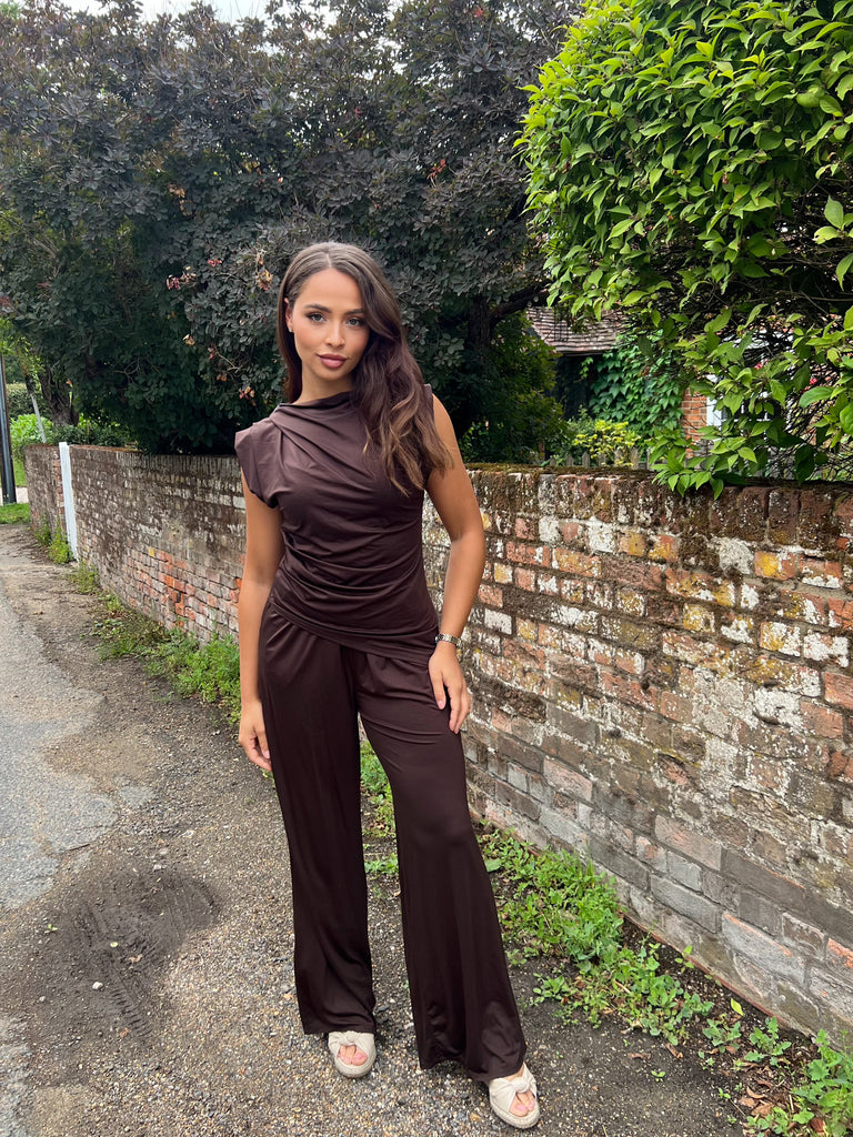 Chocolate Suede Lock Detail Fold Over Knee High Boots