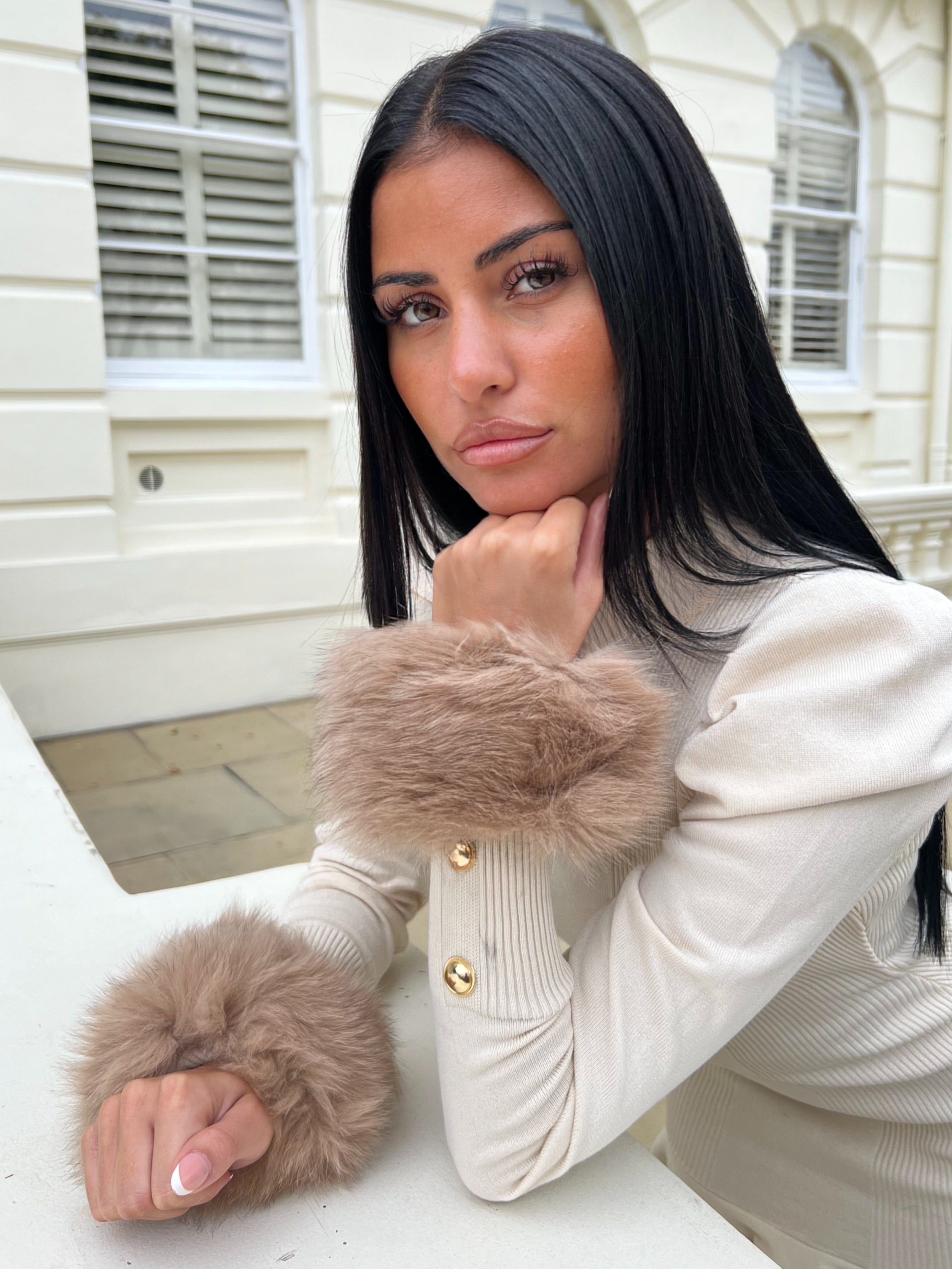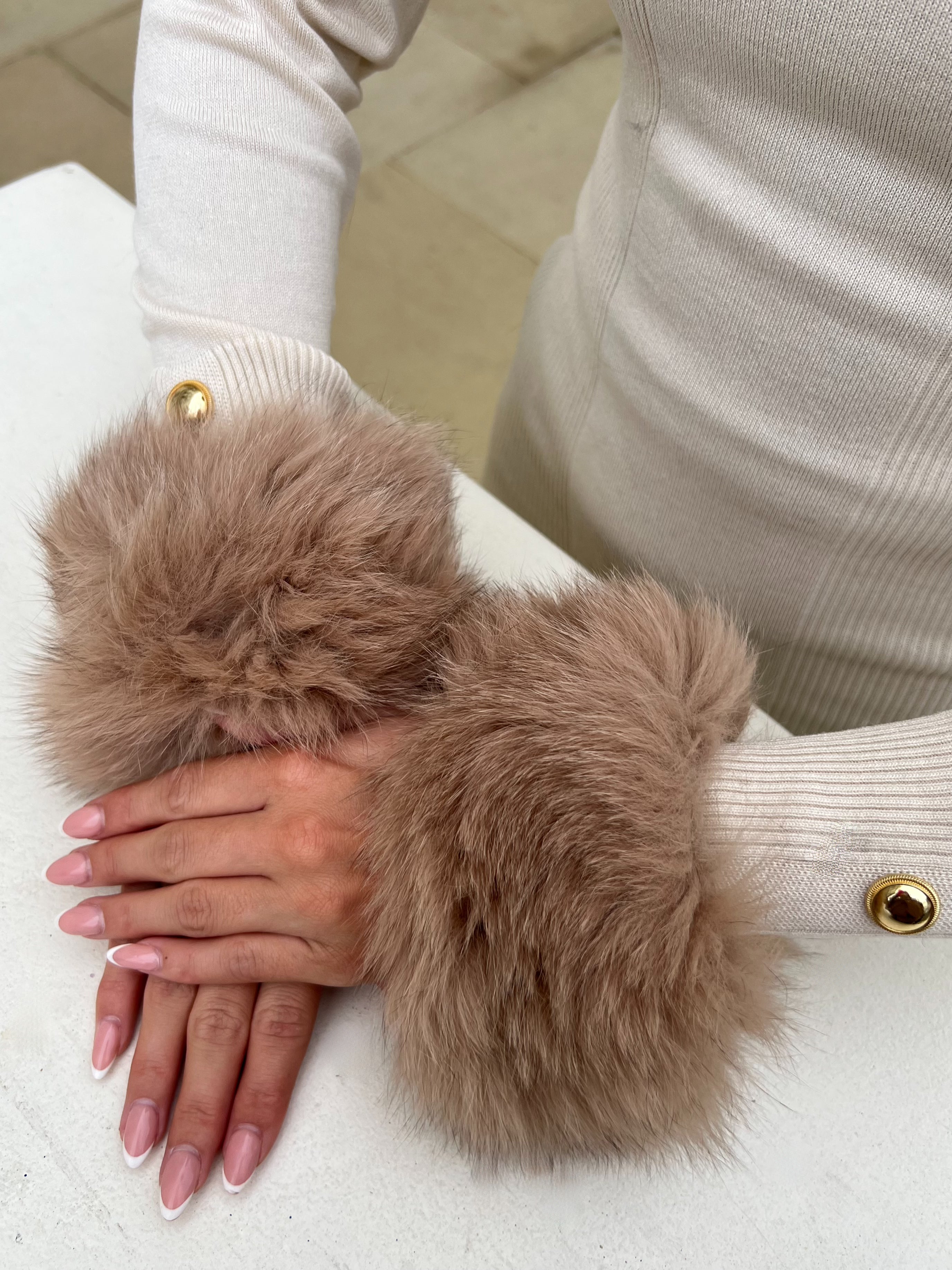 Poignets en fourrure de luxe à bande pression beige
