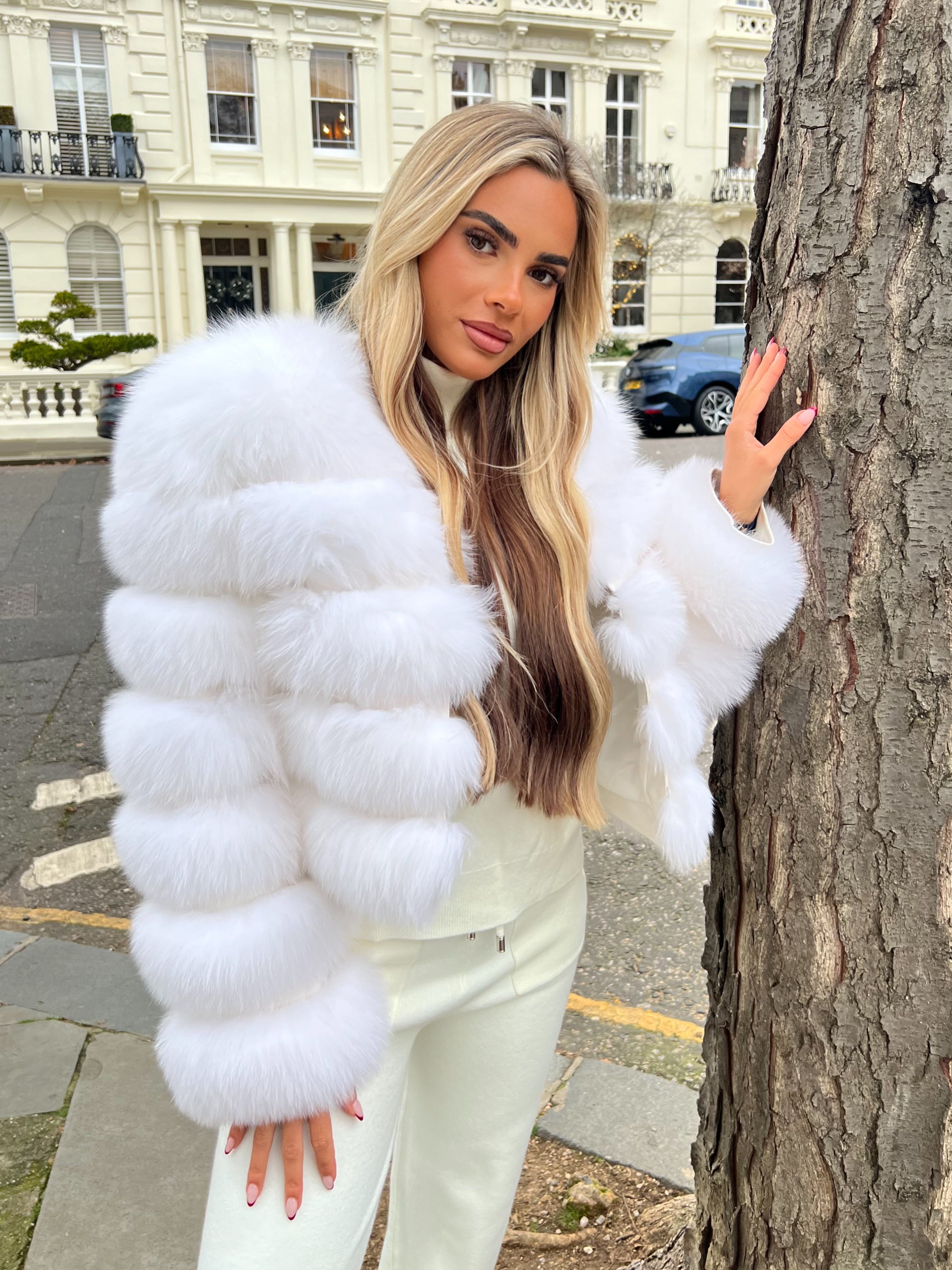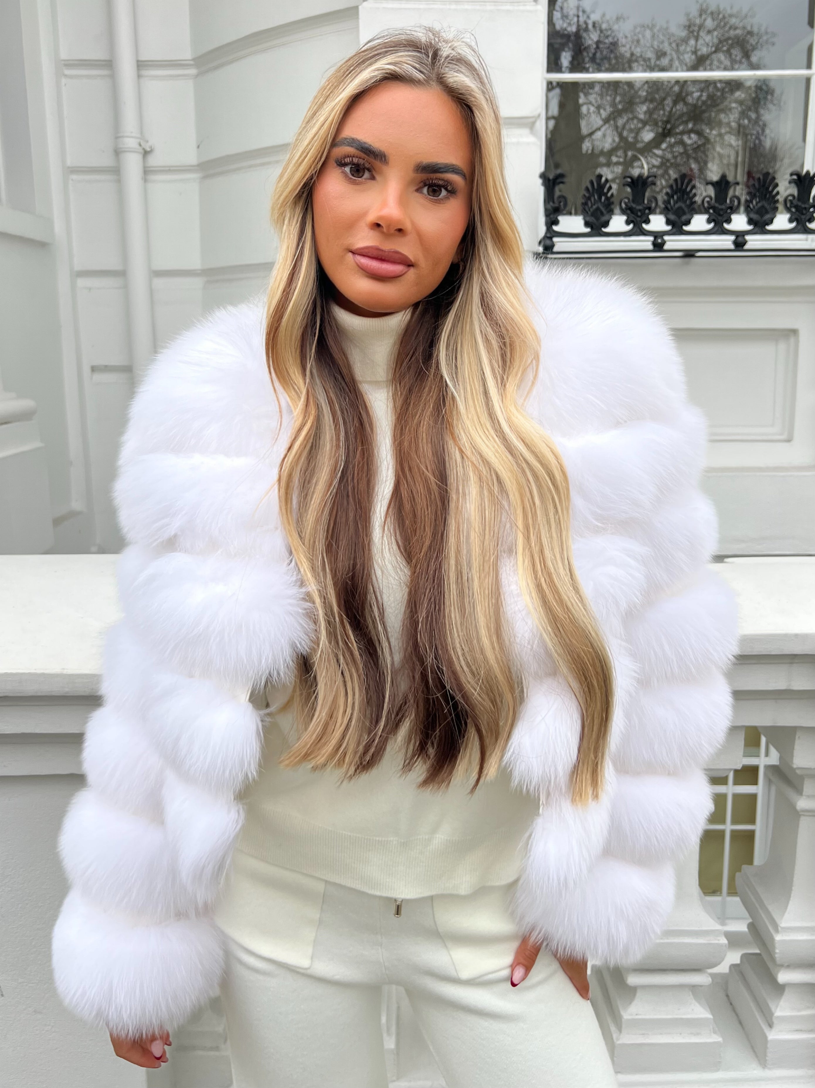 White Luxury Fur 5 Row Long Sleeve Jacket