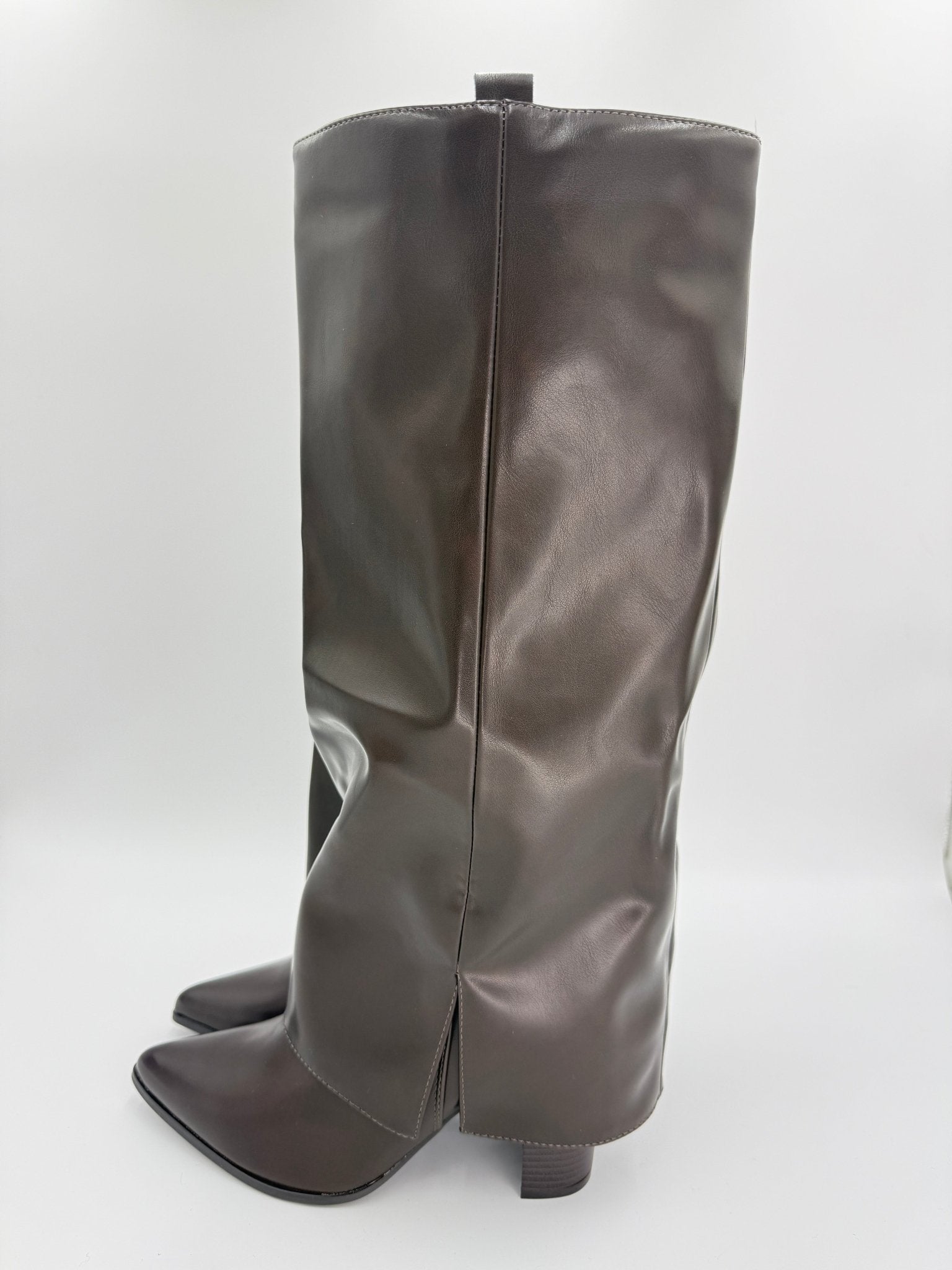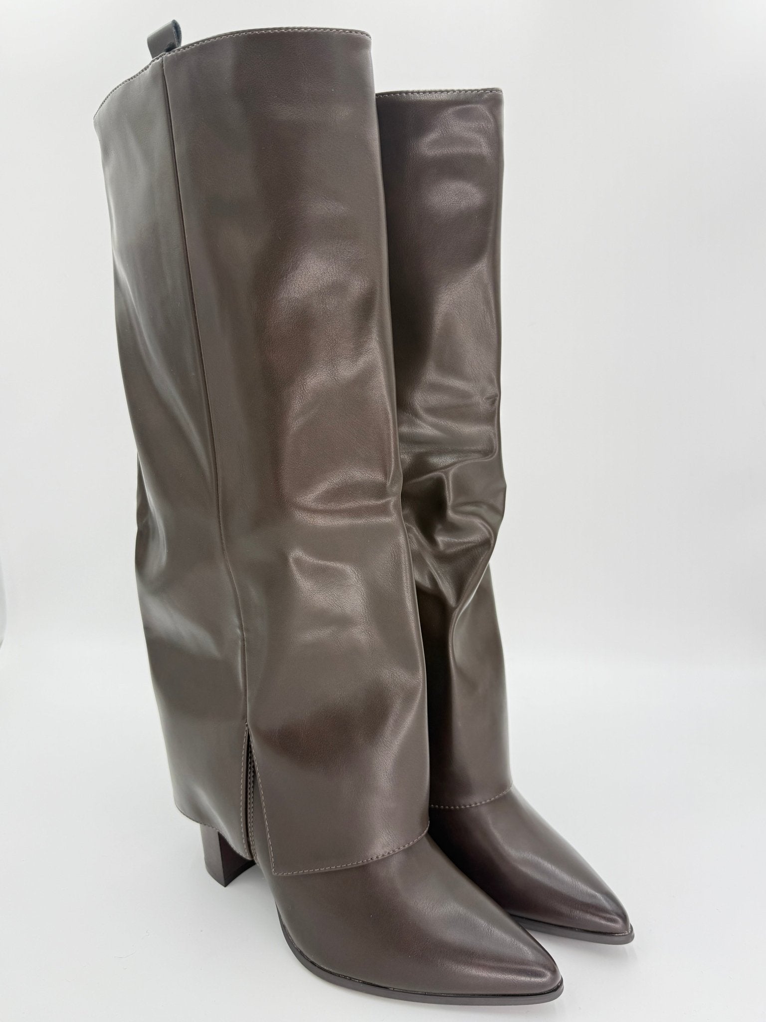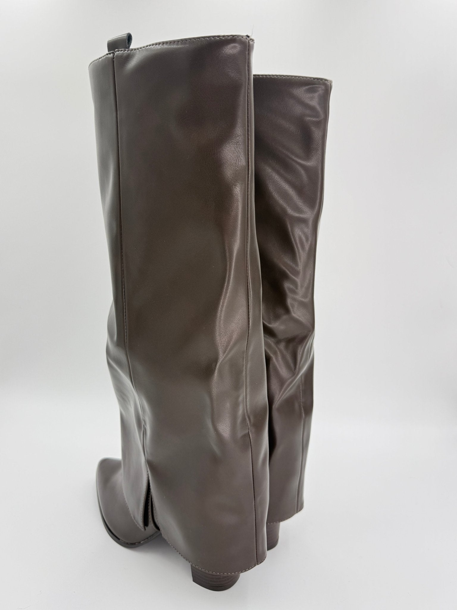 Chocolate Brown Fold Over Faux Leather Boots
