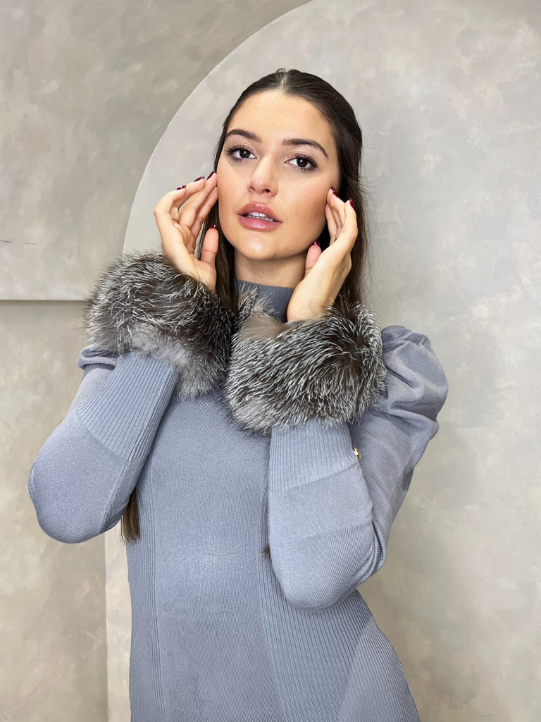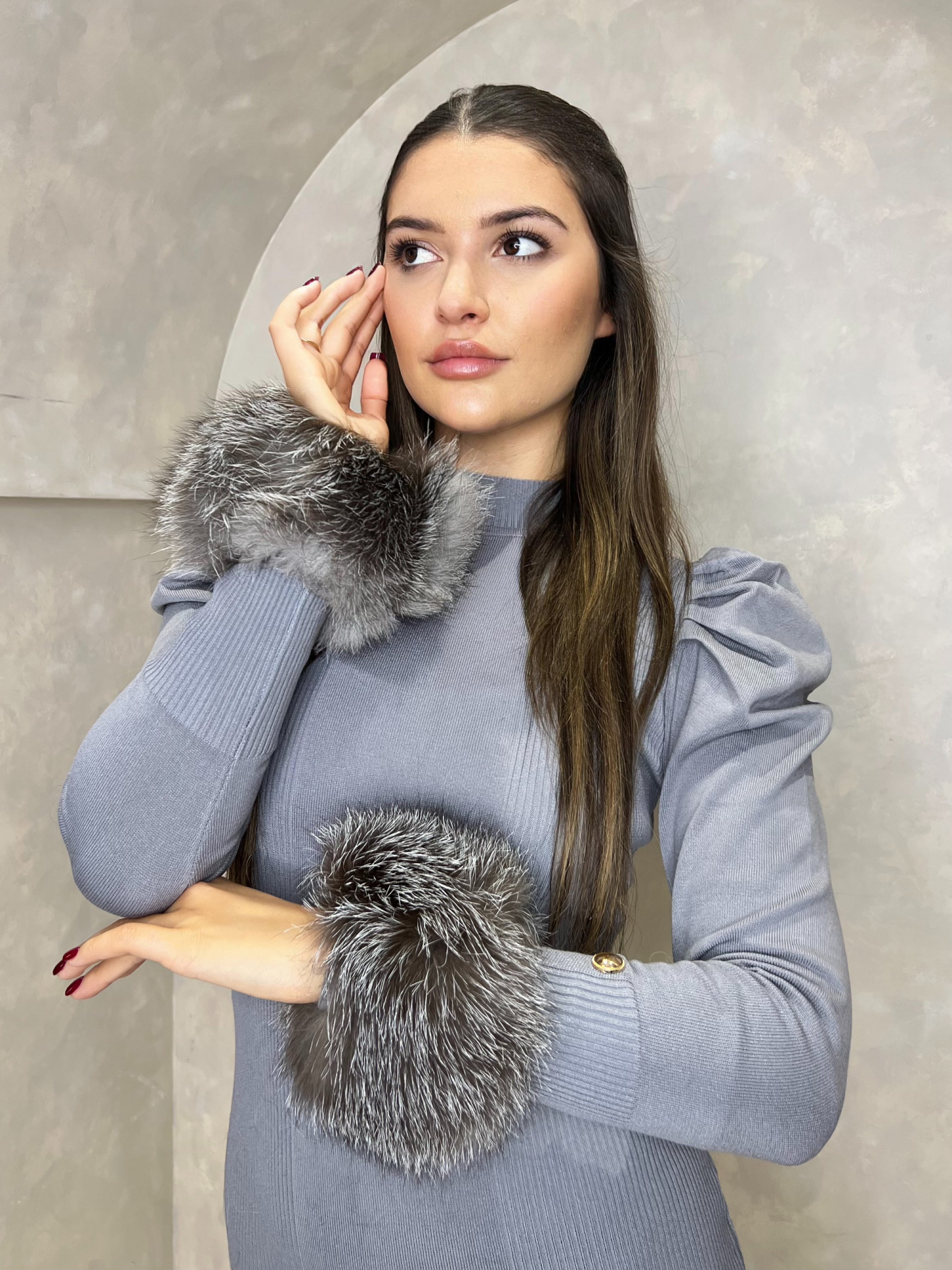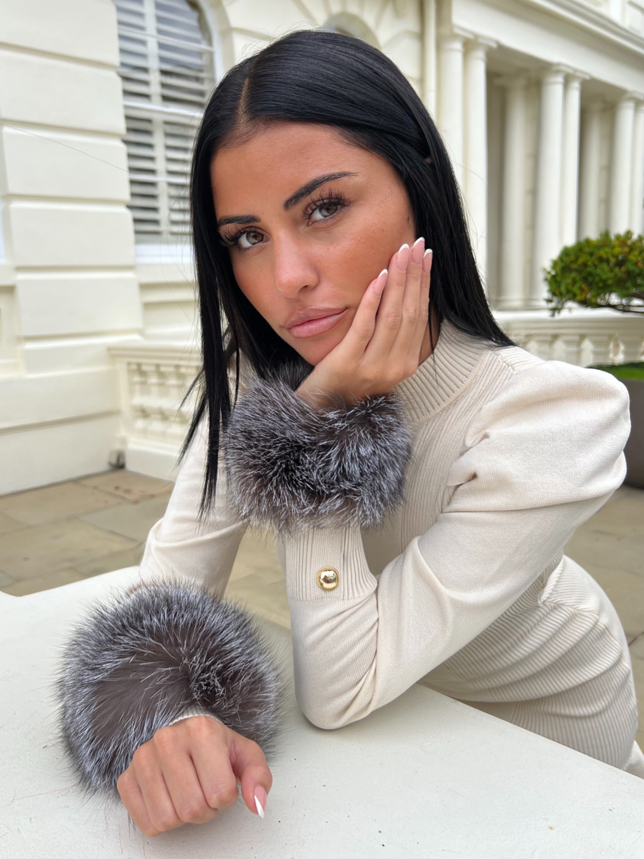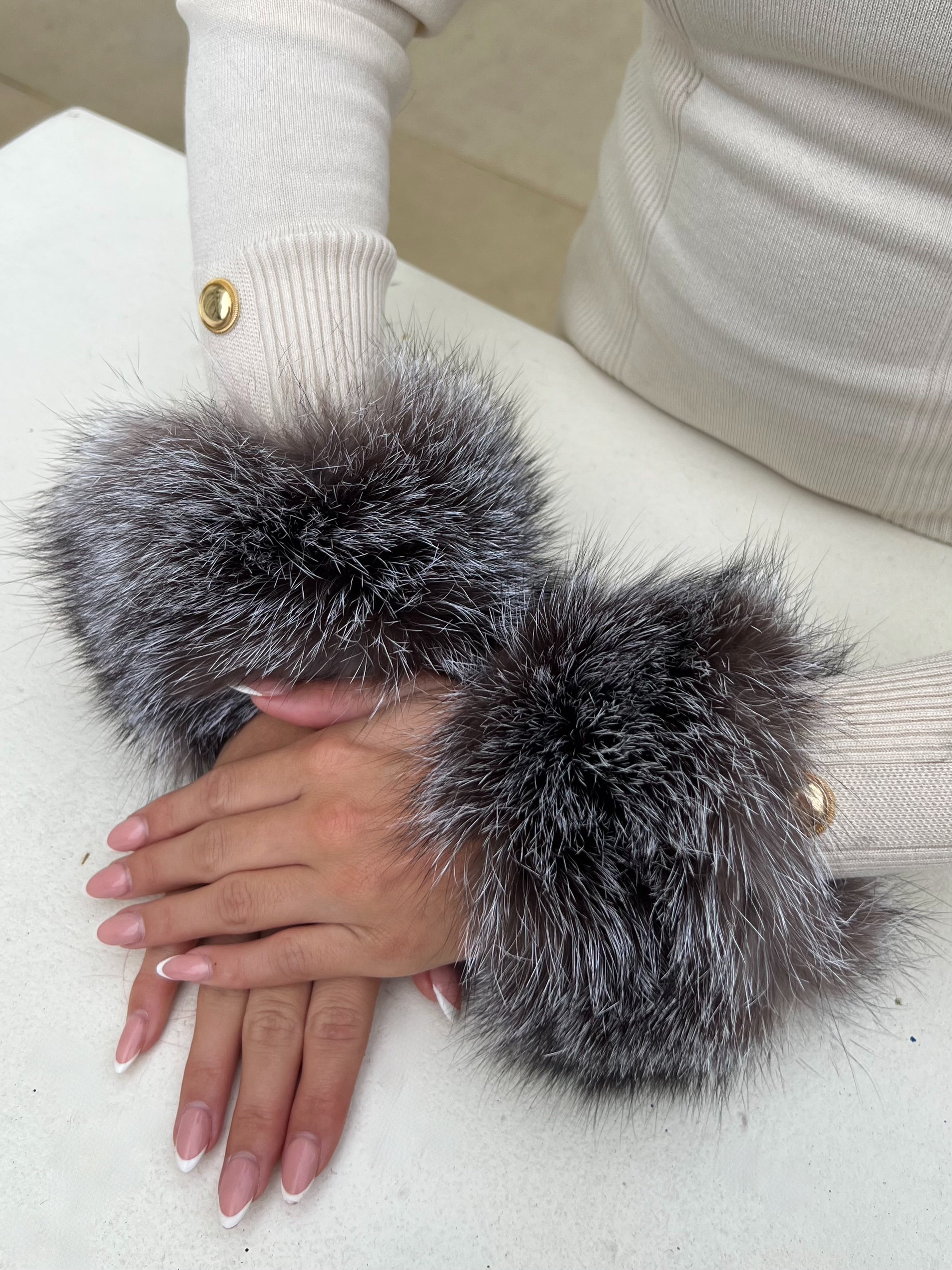 Two Tone Grey Snap Band Luxury Fur Cuffs