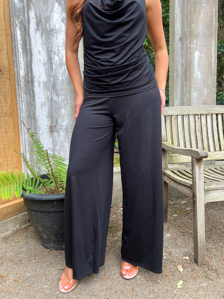 Expertly tailored high waisted trousers featuring an elegant wide leg silhouette. Crafted with premium fabric for a luxurious silky feel that drapes beautifully. The sophisticated design offers both comfort and style, perfect for elevating professional or evening attire.