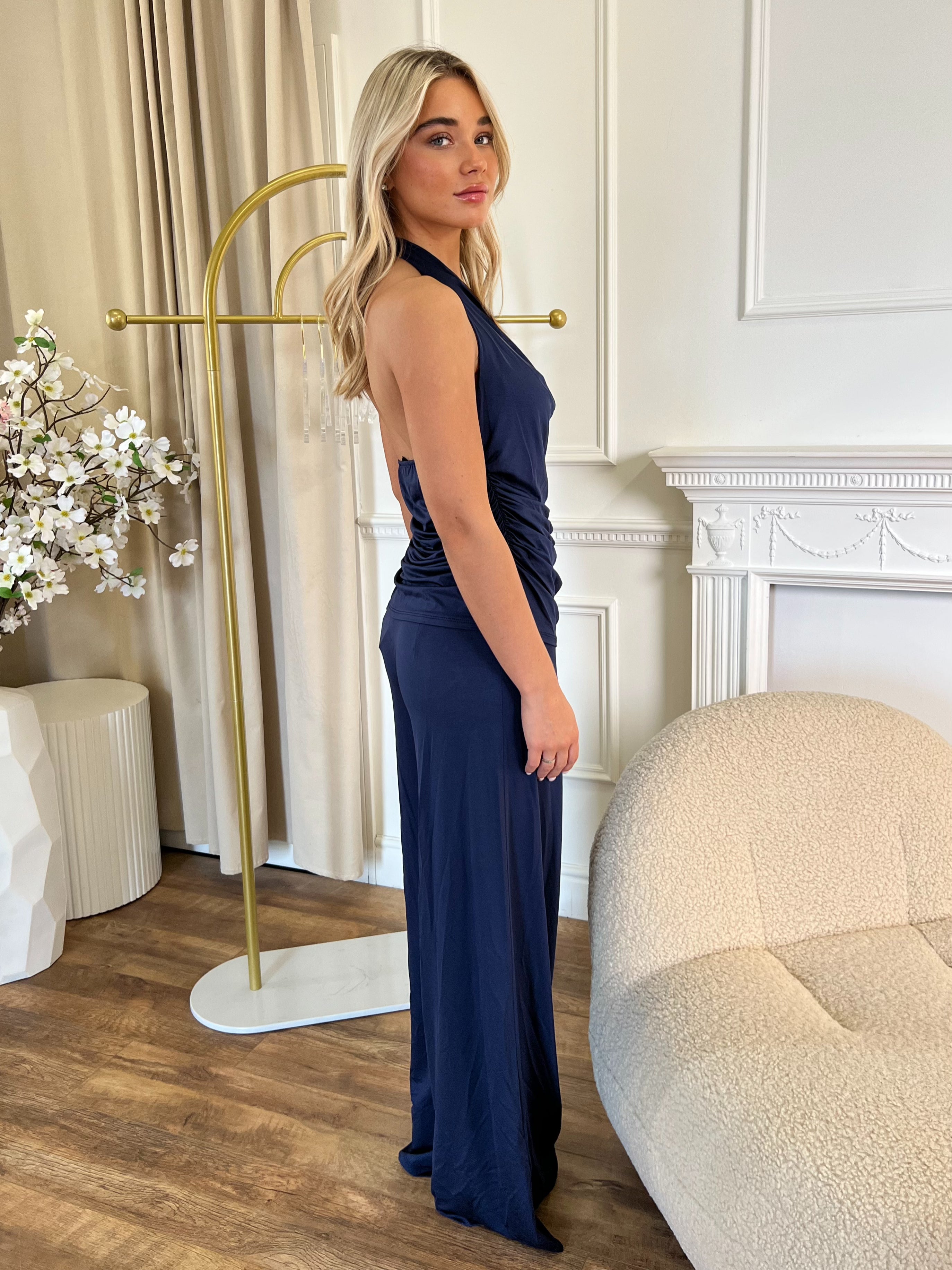 Aria Navy Halter Neck Ruched Top