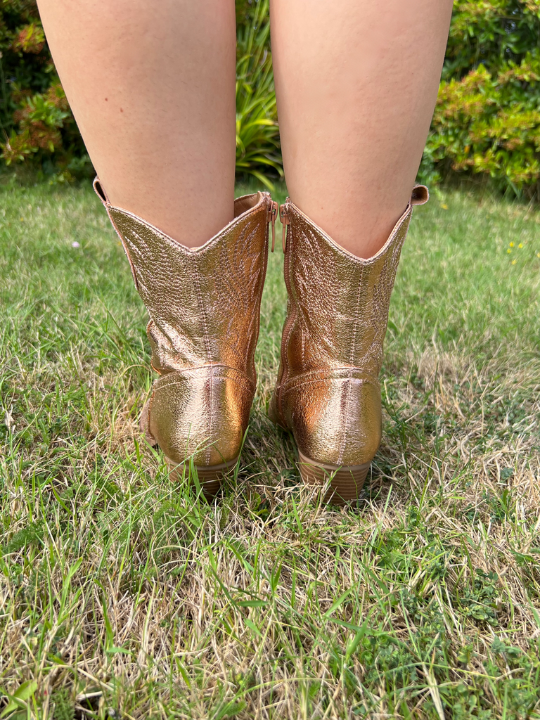 Copper Faux Leather Ankle Cowboy Boots