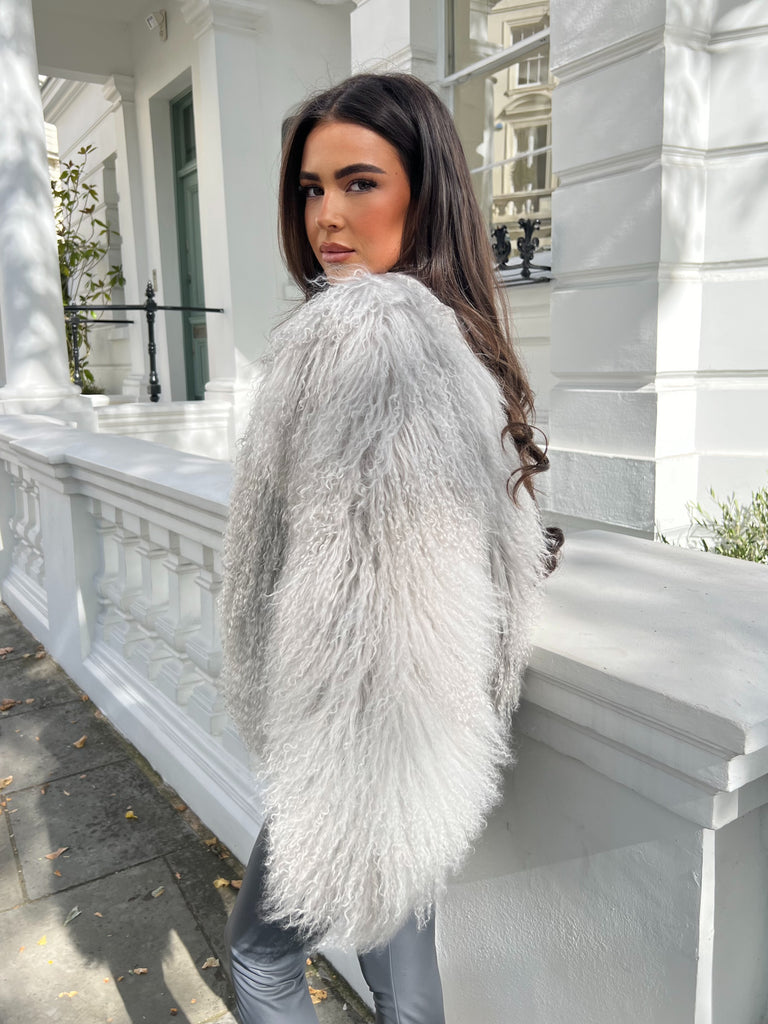 Expertly crafted from luxurious Mongolian lamb fur, this black coat exudes sophistication and elegance. The hook and eye fastening ensures a secure fit, while the collarless design adds a modern touch. Stay warm and stylish in this timeless piece.