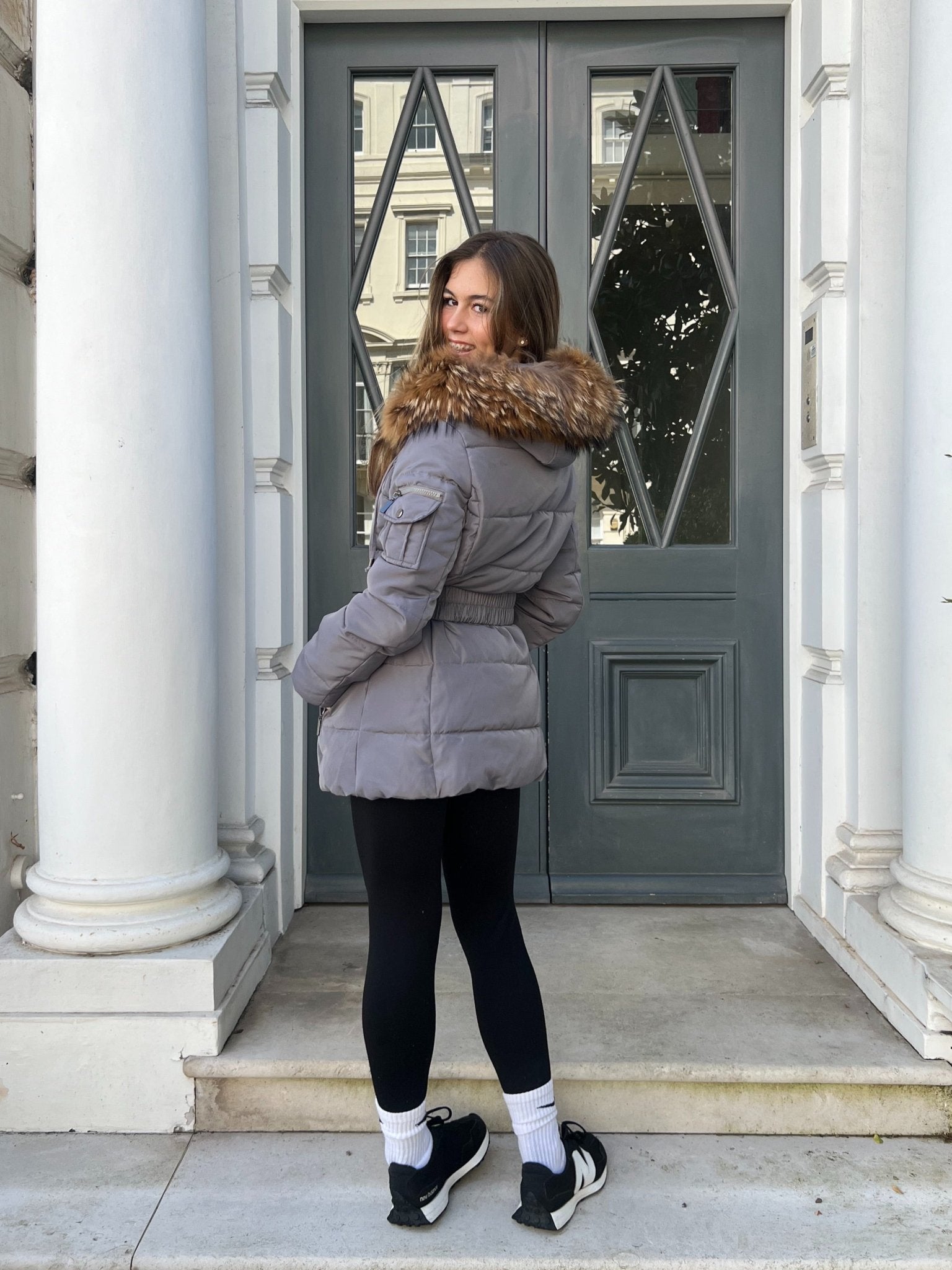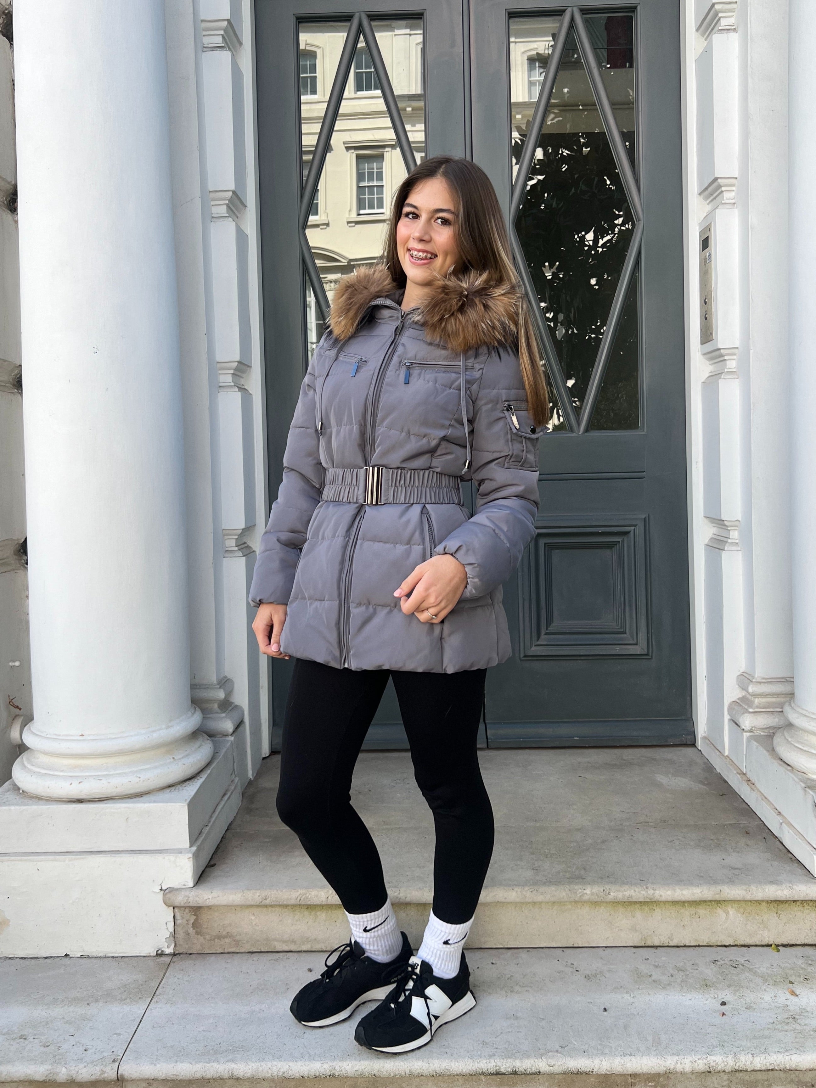 Childrens Grey Luxury Fur Padded Belted Coat