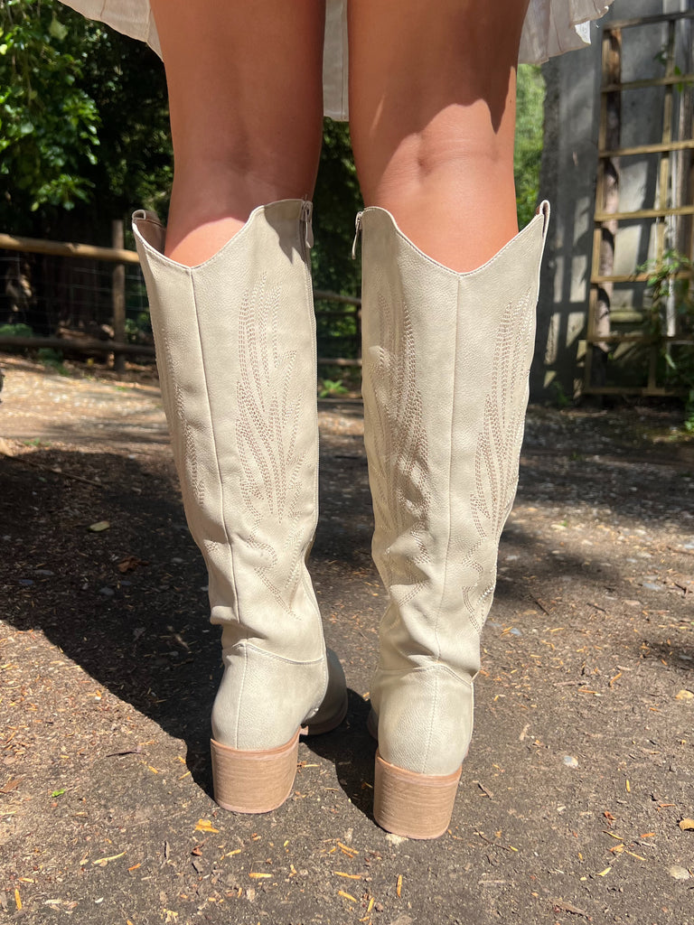 Light Gold Knee High Cowboy Boots