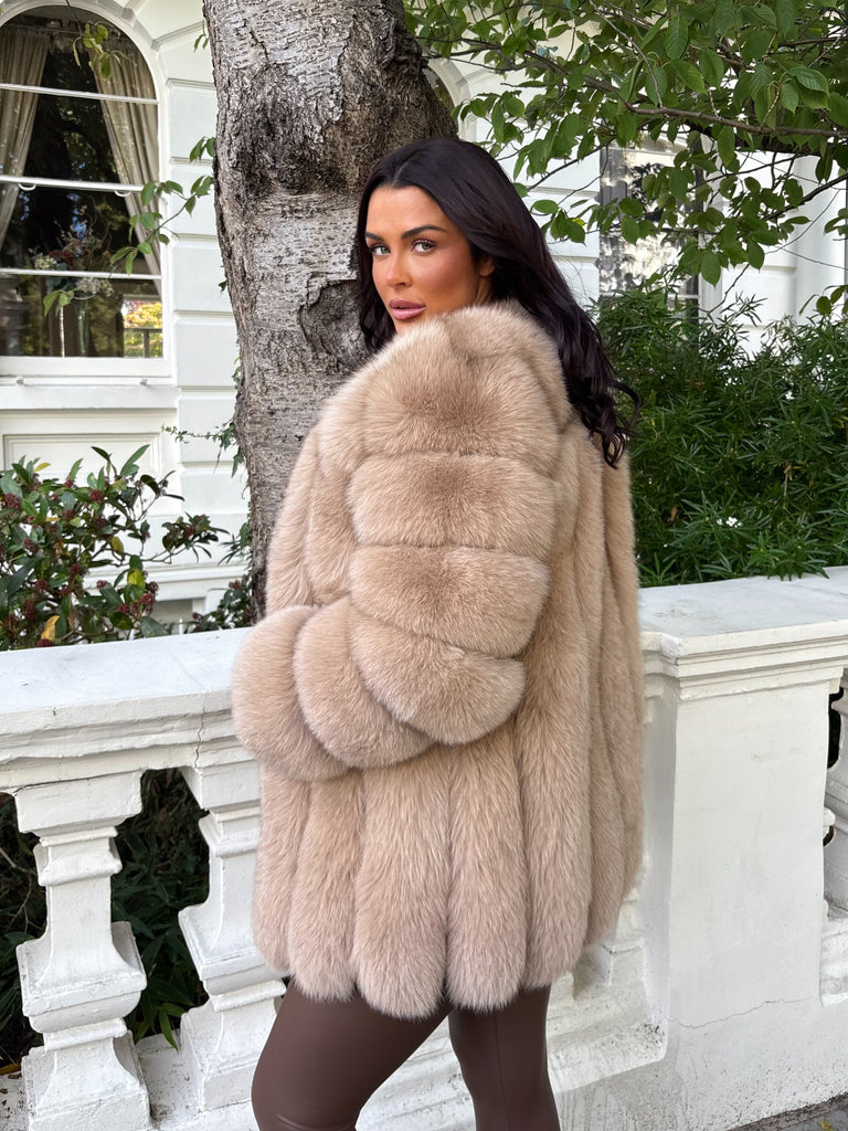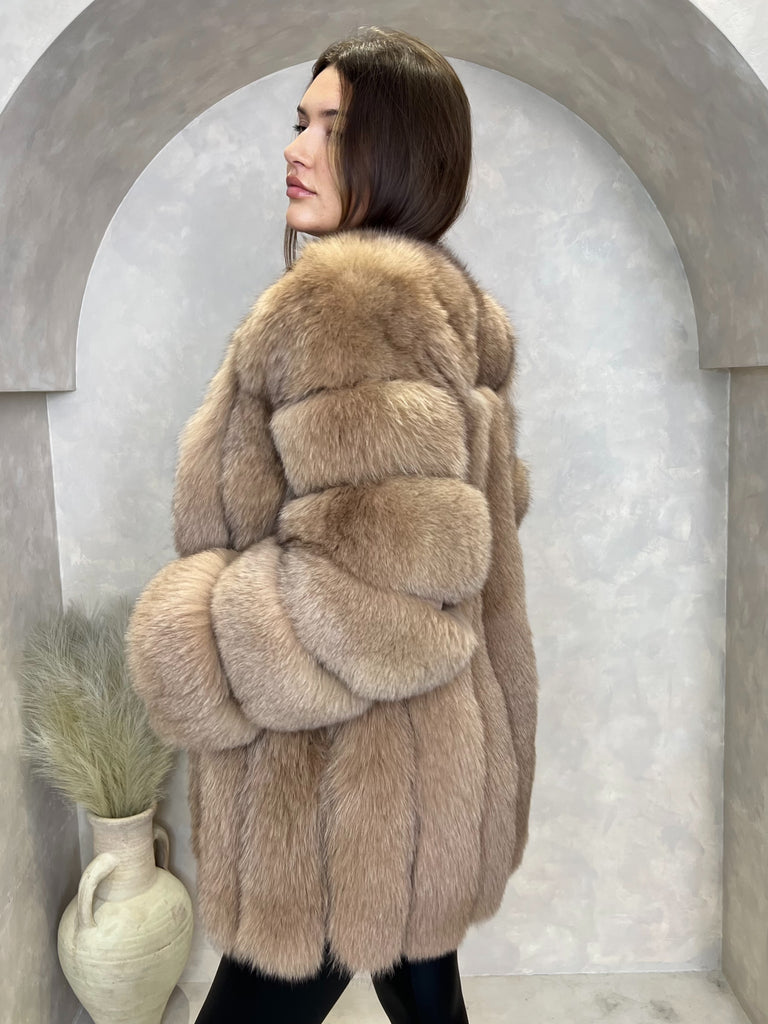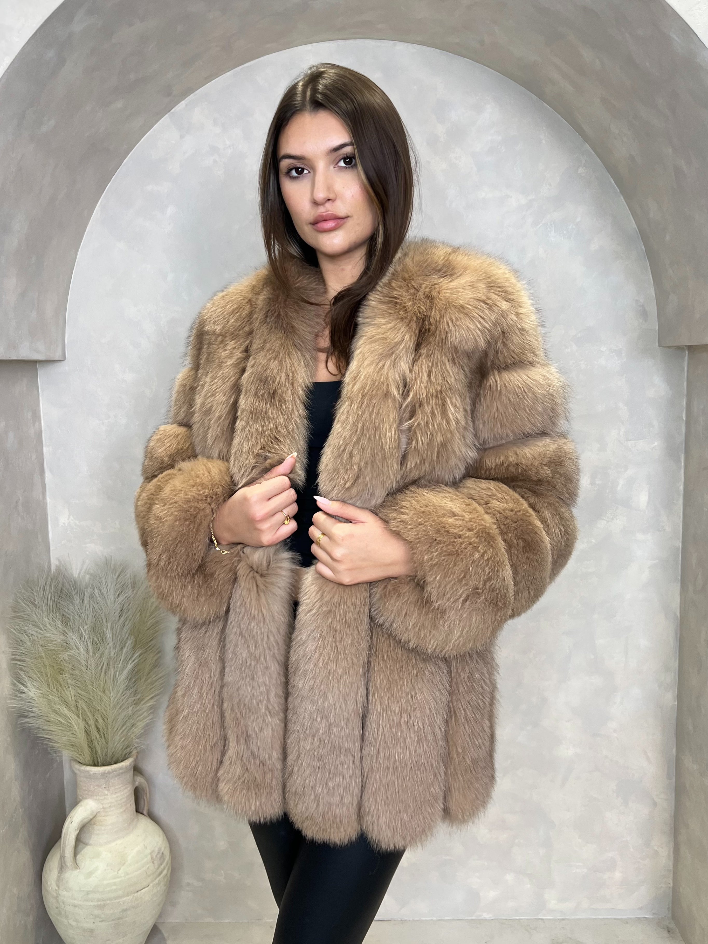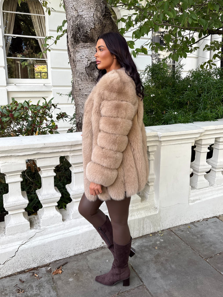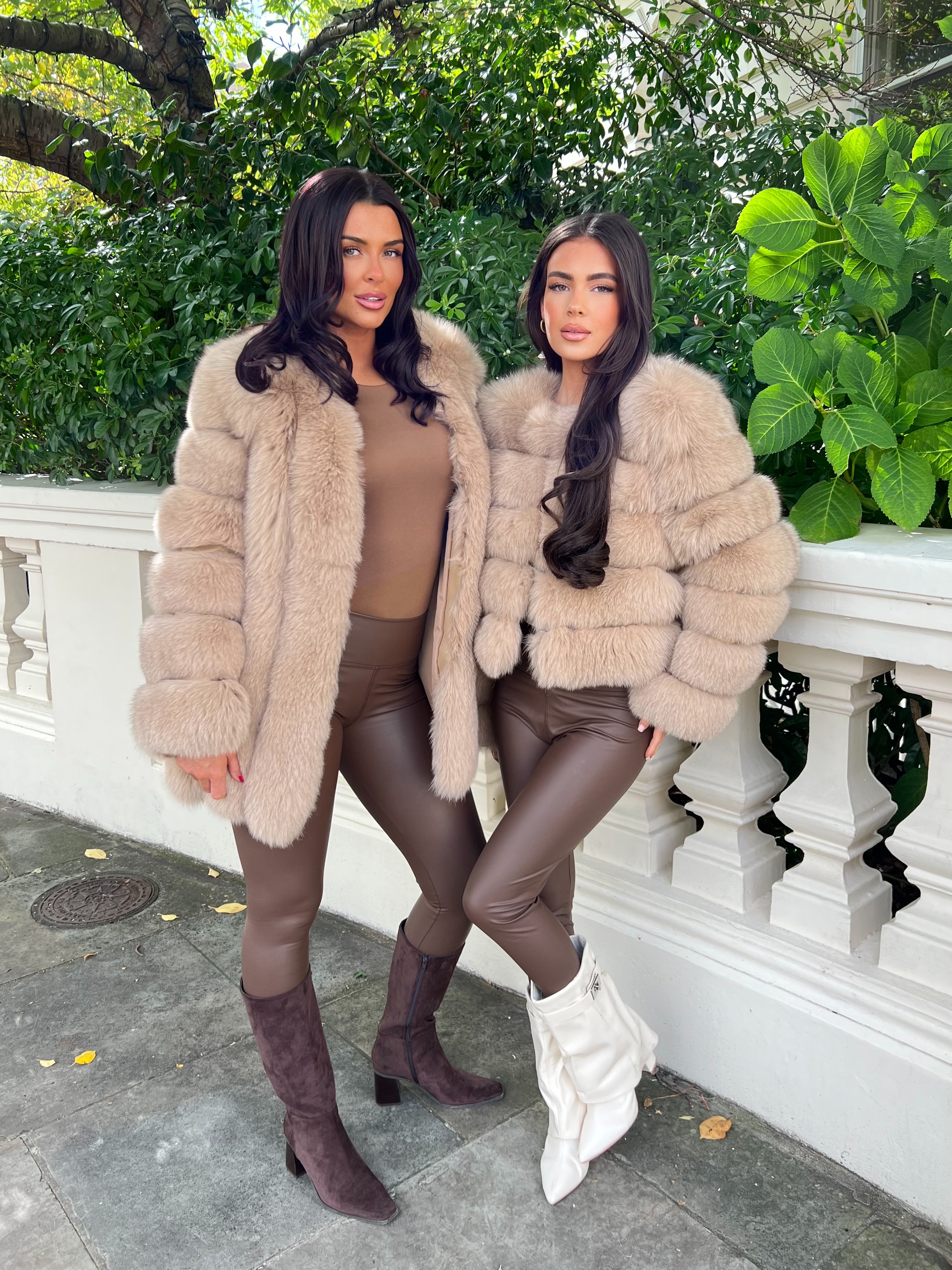 Experience the ultimate in luxury and warmth with our Tan Luxury Fur Mid Length Coat. Crafted from the finest materials, this elegant coat exudes timeless glamour while providing unbeatable comfort. Stay stylish and cozy with this must-have addition to your wardrobe.