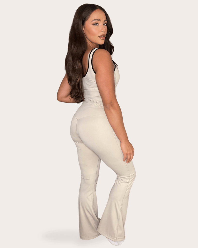Social Club Taupe Shoulder Pad Top & Boot Cut Trouser Co Ord