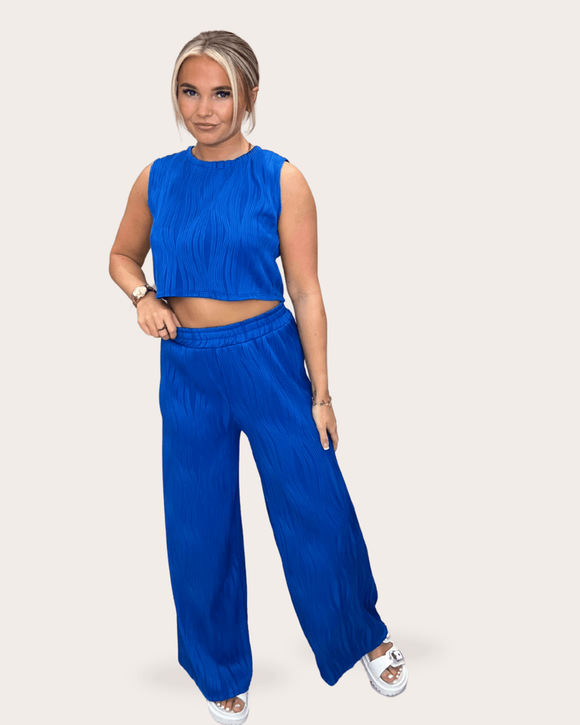 Social Club Navy Shoulder Pad Top & Boot Cut Trouser Co Ord