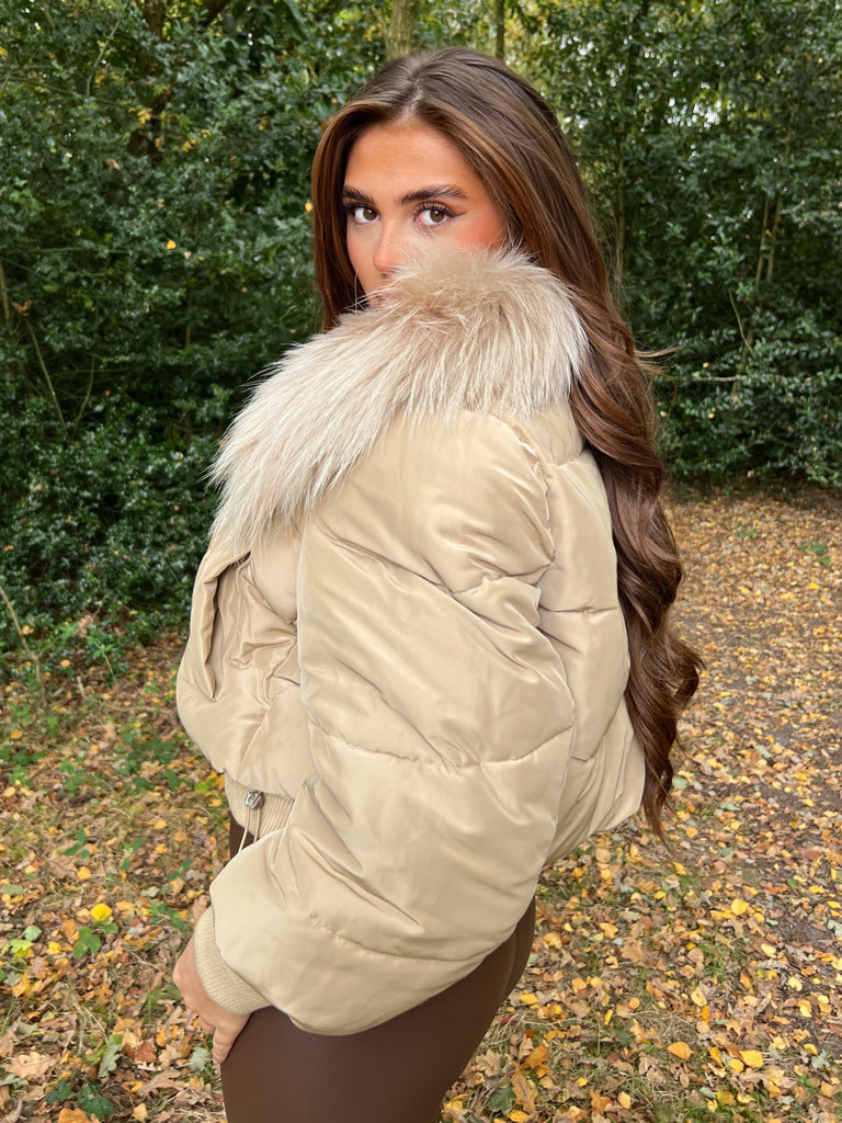 Beige Fur Luxury Fur Padded Cropped Coat Sample