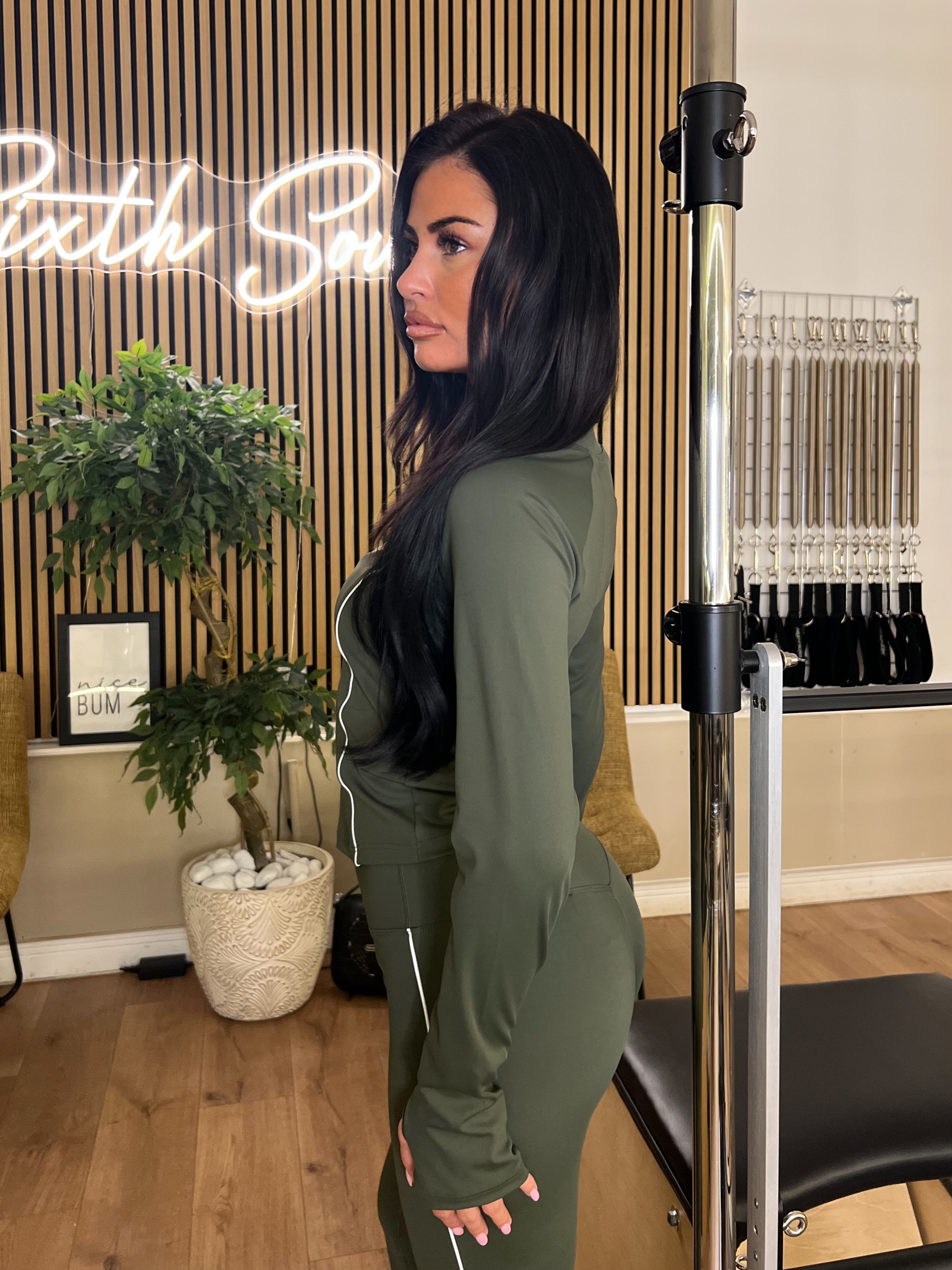 Khaki Piped Jacket & Wide Leg Trouser Gym Set