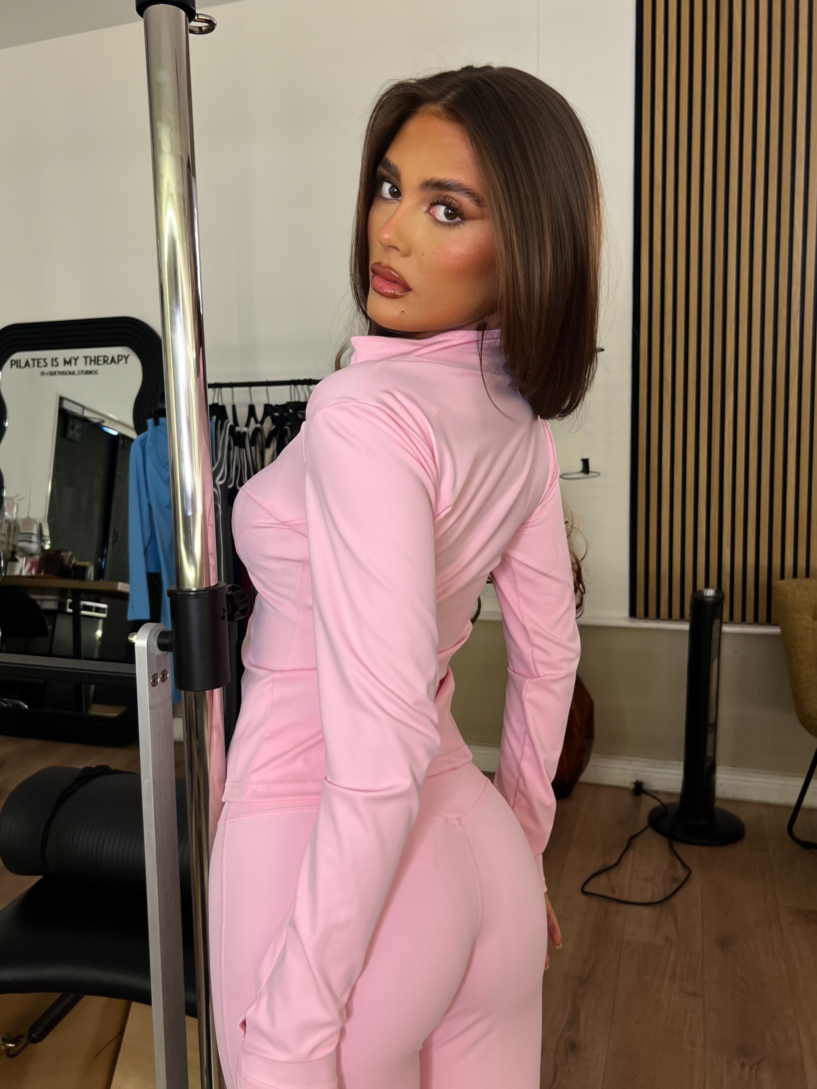 Pink Zip Jacket & Wide Leg Trouser Gym Set